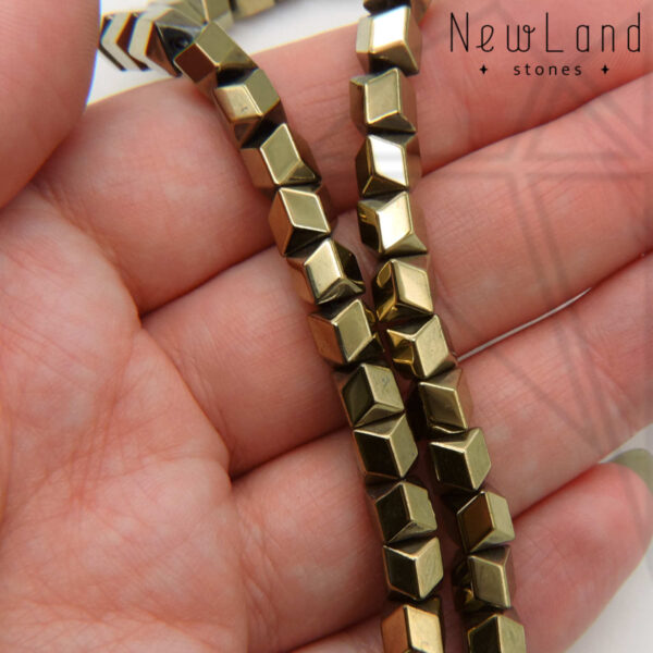 Гематит куб 5,5 мм с интересной огранкой темно золотого цвета.