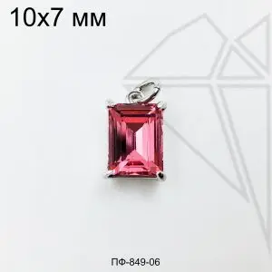 Подвеска прямоугольная с малиновым фианитом 10 мм (родий)