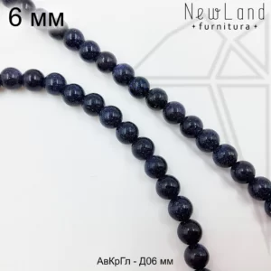 Авантюрин синий круглый гладкий глянцевый 6 мм 1/2 нити