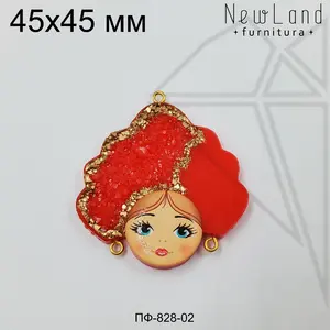 Подвеска девица красная 45х40 мм (золото)