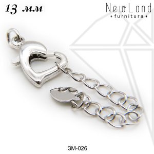 Замок карабин с удлинительной цепочкой 13 мм (родий)