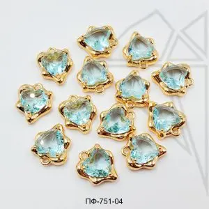 Подвеска сердце с голубым фианитом 12 мм 10 шт (золото)