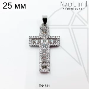 Подвеска крестик с цветными фианитами 30 мм (родий)