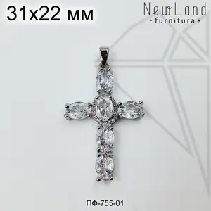 Подвеска крестик с белыми фианитами 31 мм (родий)