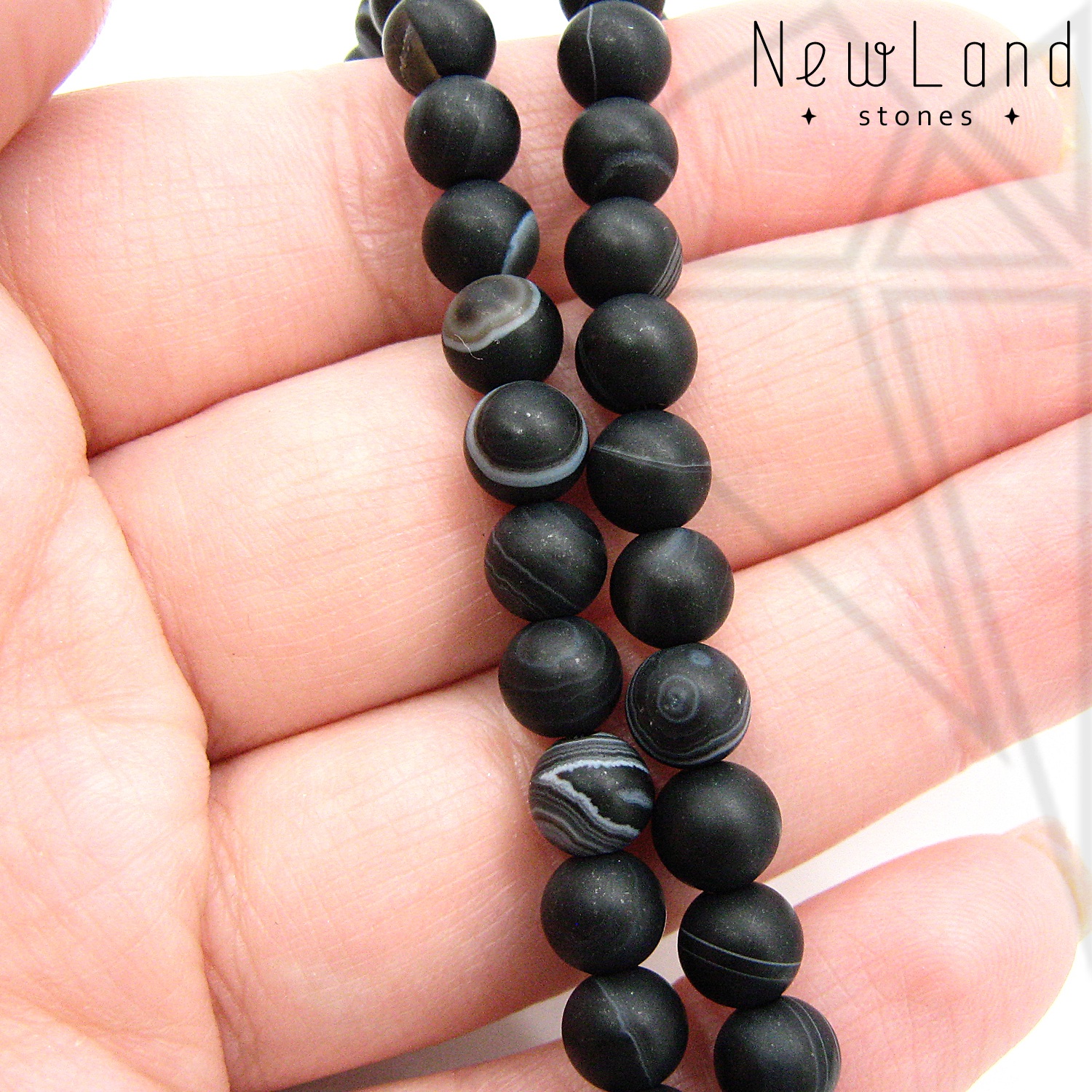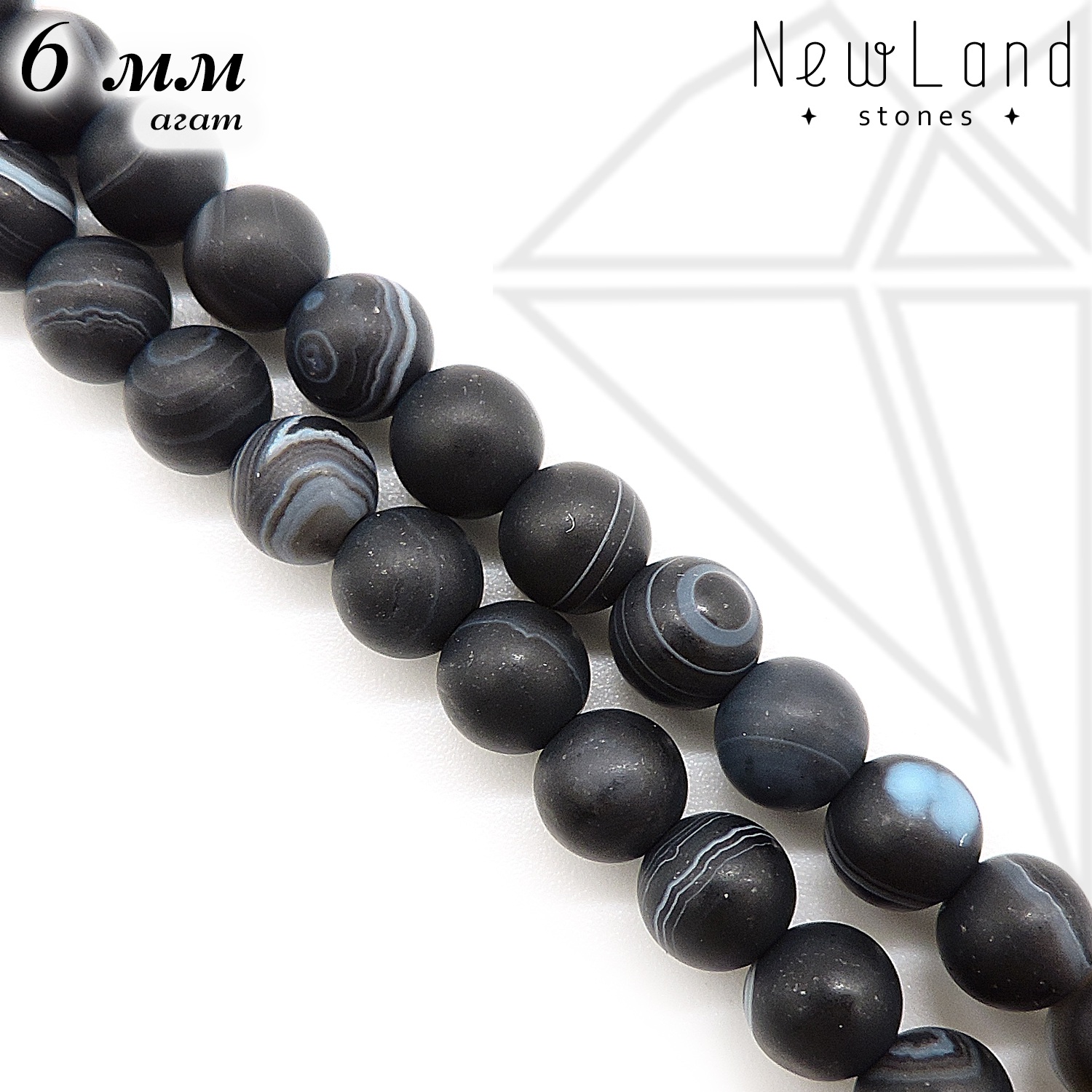 Агат-Оникс черный матовый натуральный круглой формы 6мм.