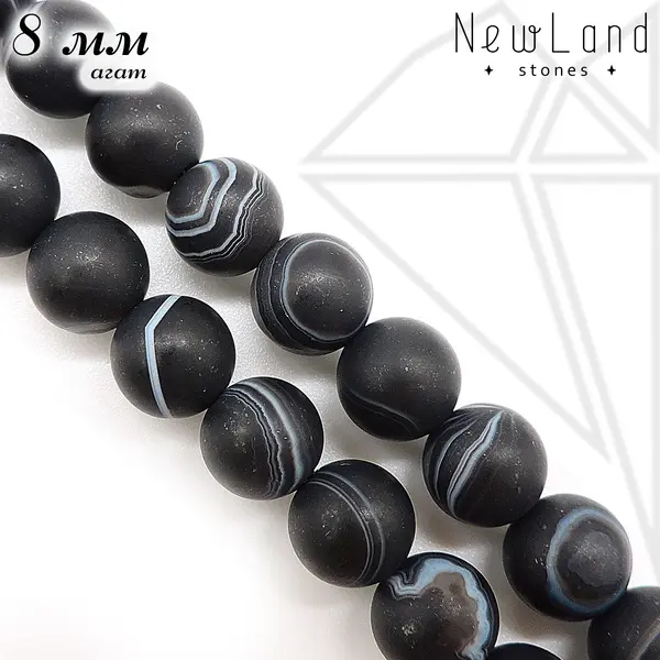 Агат-Оникс черный матовый натуральный круглой формы 8 мм.