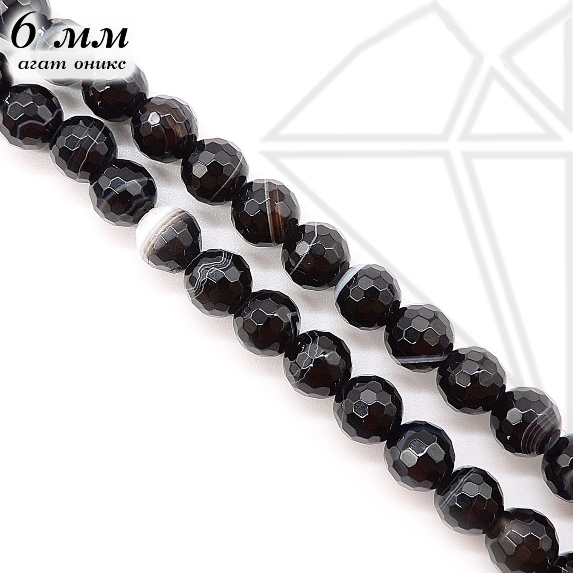 Агат-Оникс черный круглой формы с огранкой 6 мм.