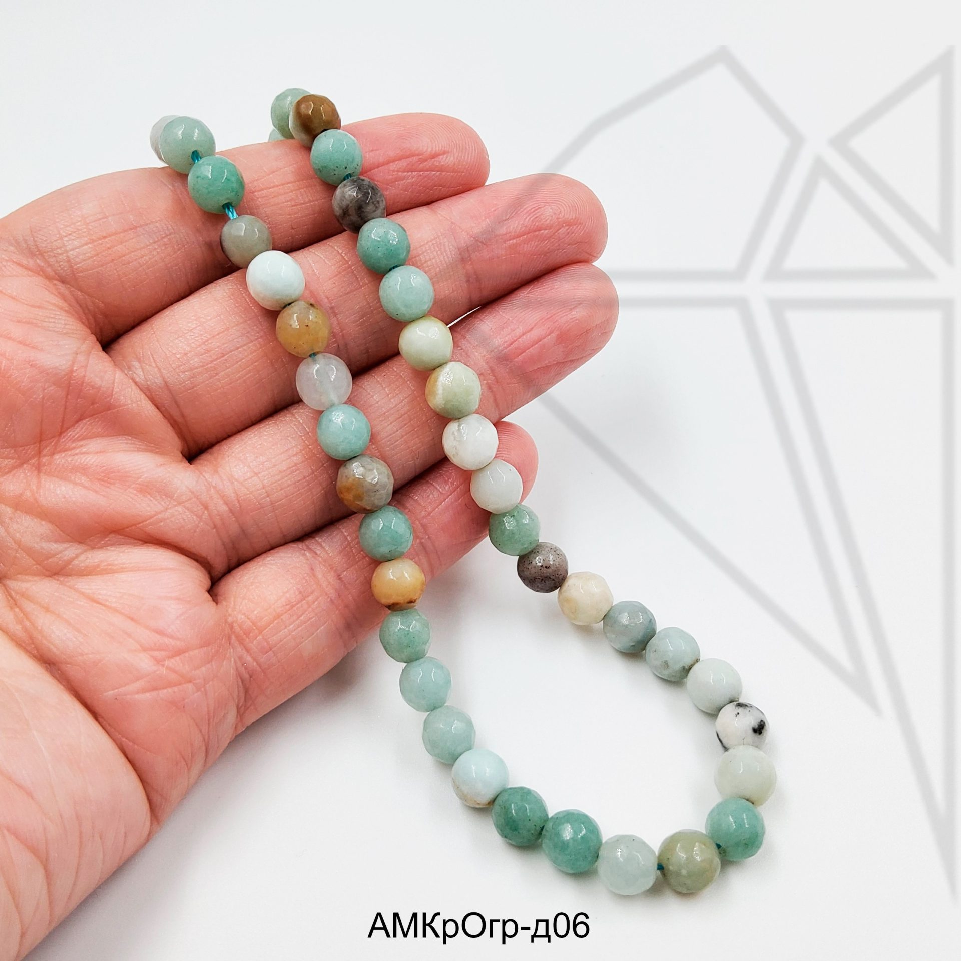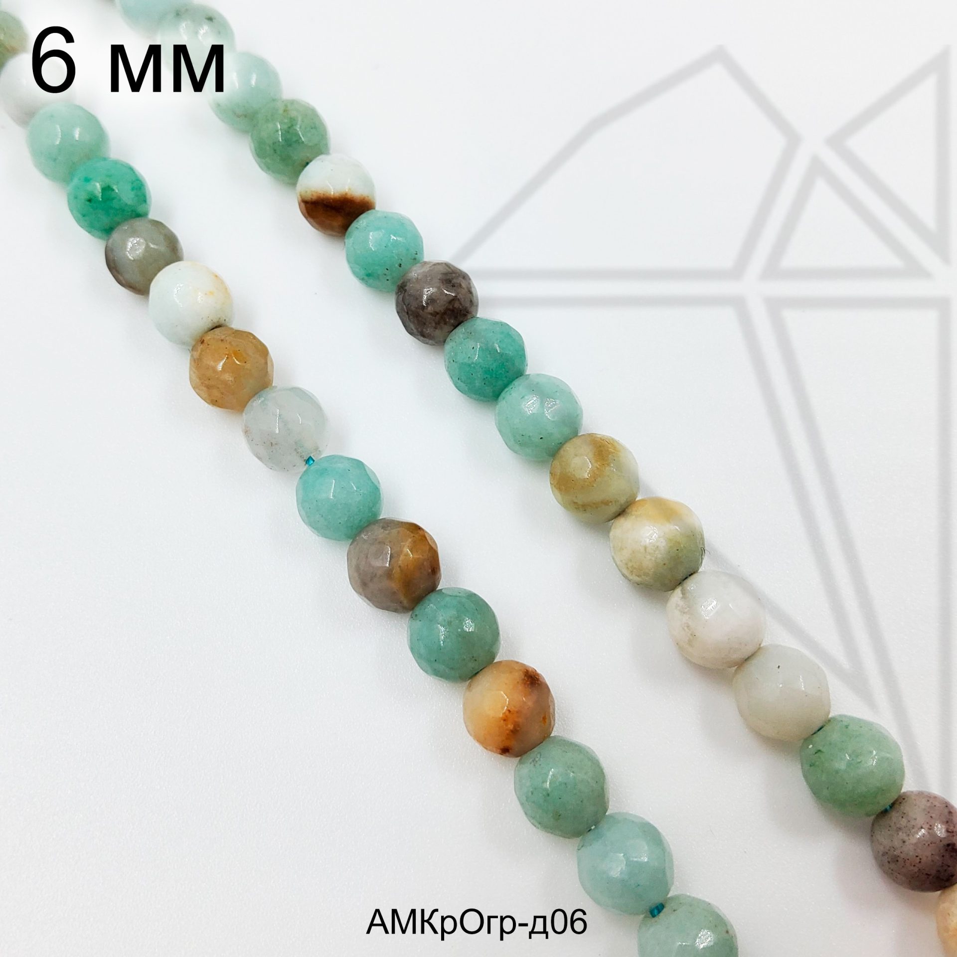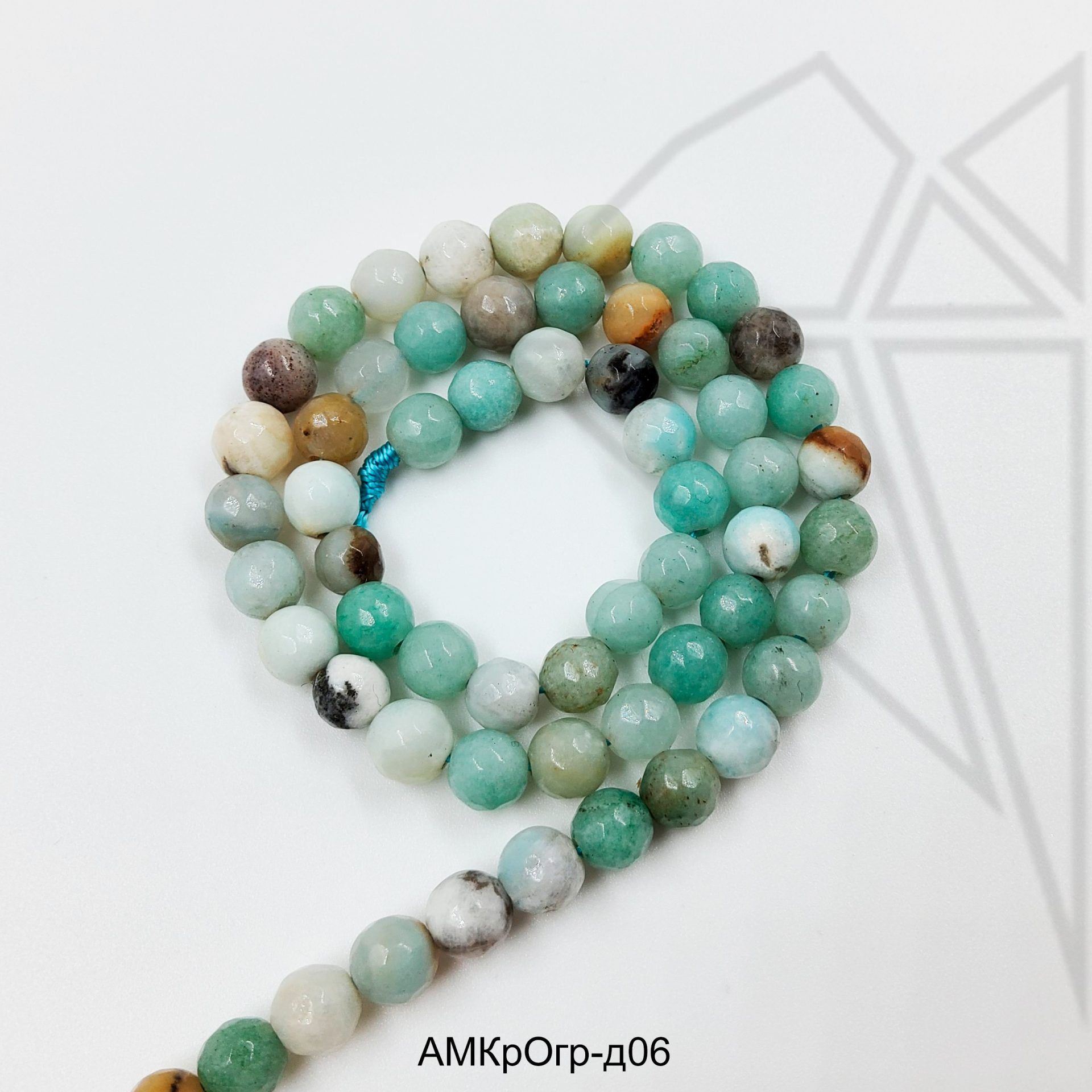 Амазонит глянцевый гладкий с огранкой 6 мм.