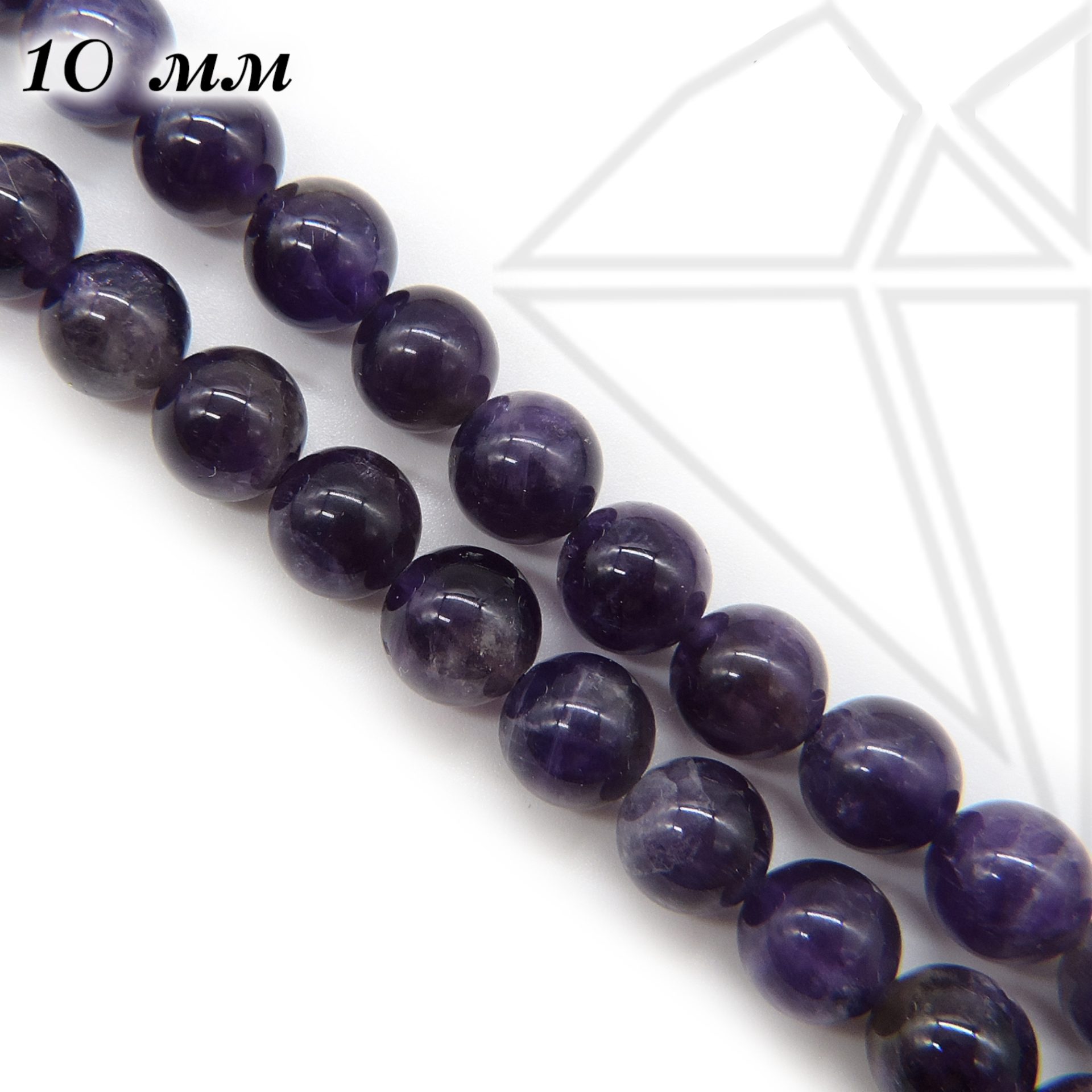 Аметист фиолетовый круглой формы глянцевый 10 мм.