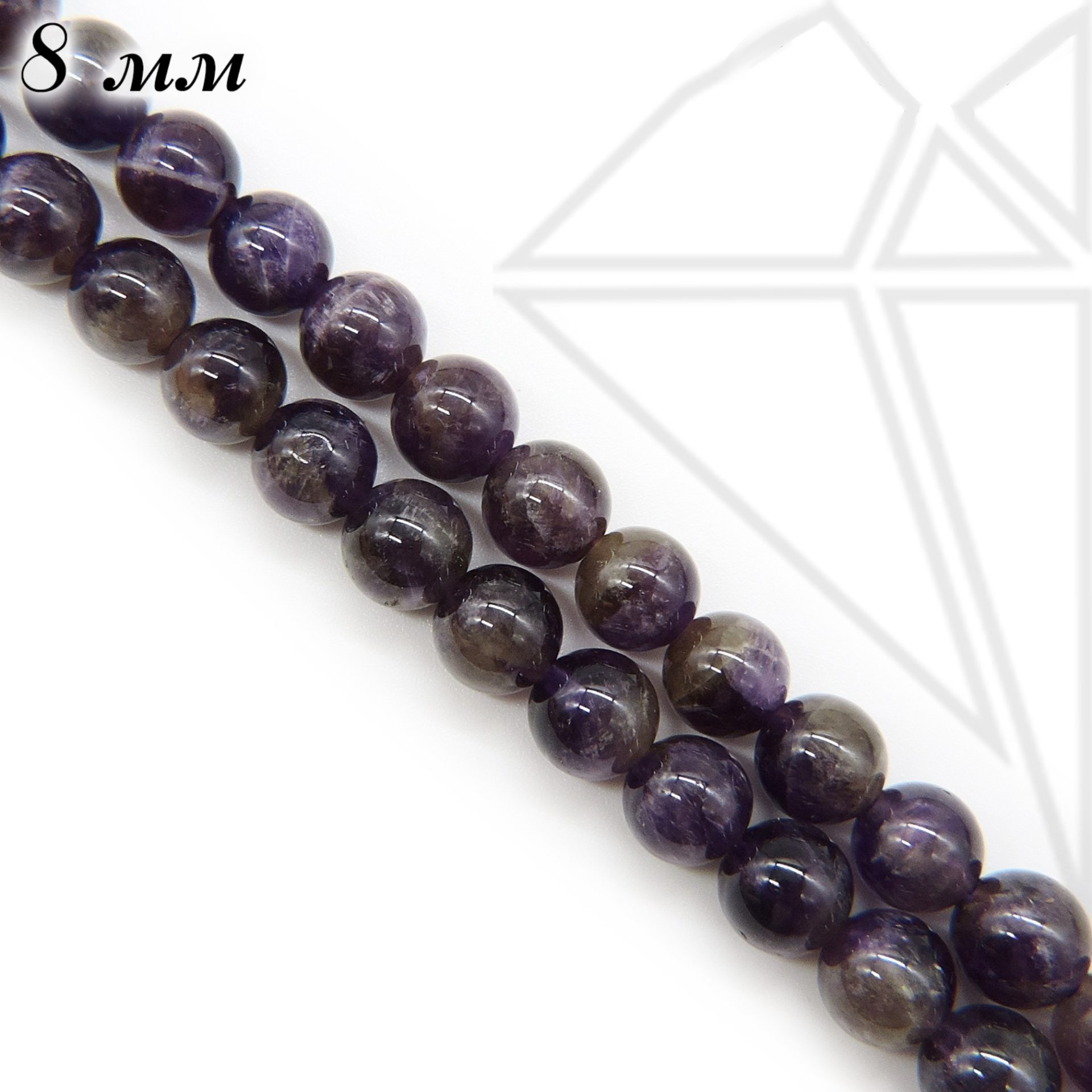 Аметист фиолетовый круглой формы глянцевый 8 мм.