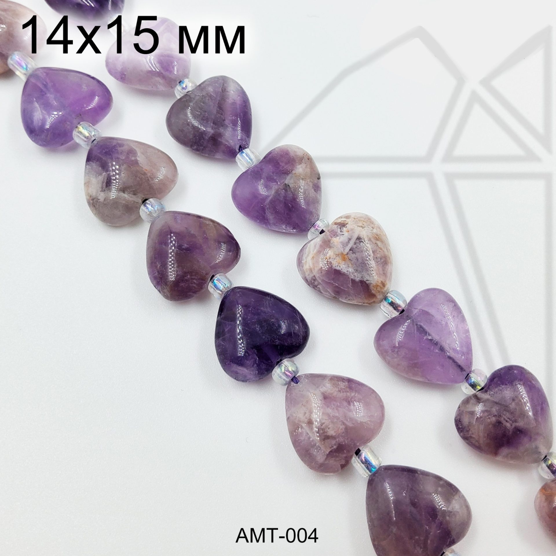 Аметист сердце гладкий 15х14 мм.