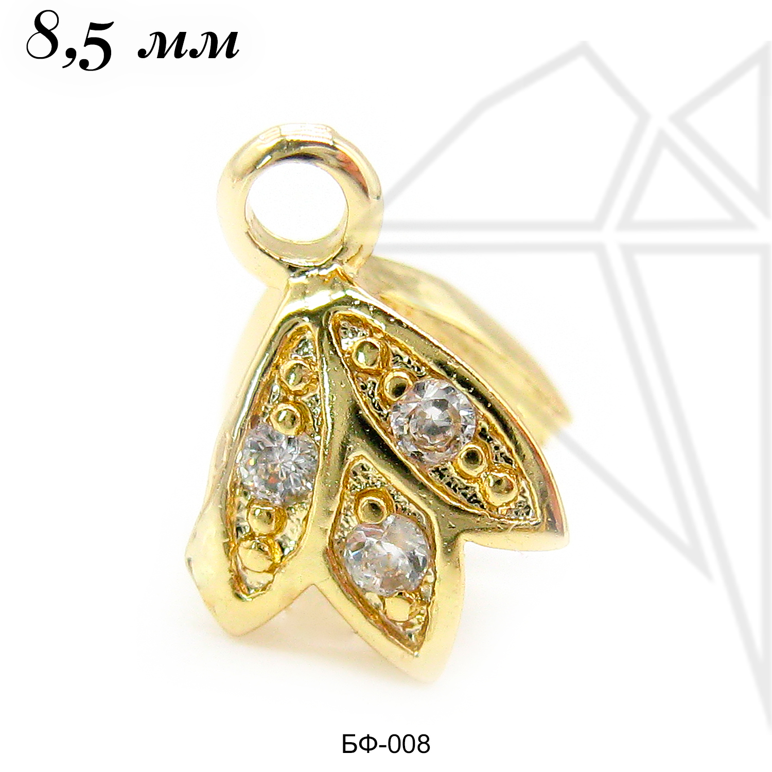 Бейлы класса люкс с позолоченным покрытием (по латуни), инкрустированные фианитами. Бейл для создания украшений используется для подвеса кулонов.