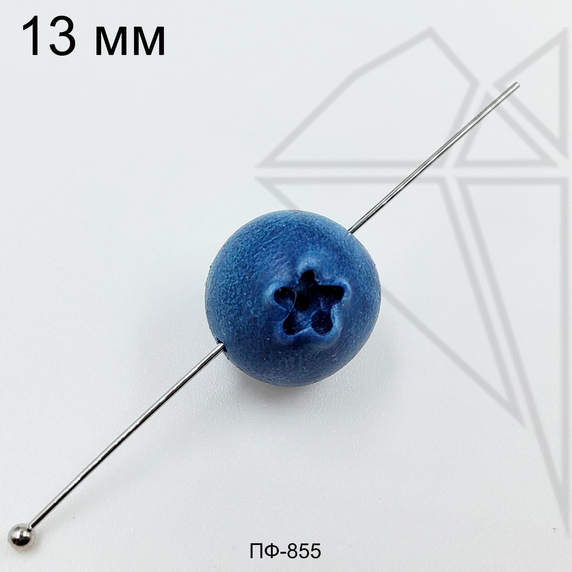 Бусина РУЧНОЙ РАБОТЫ в форме голубики с 2 отверстиями.