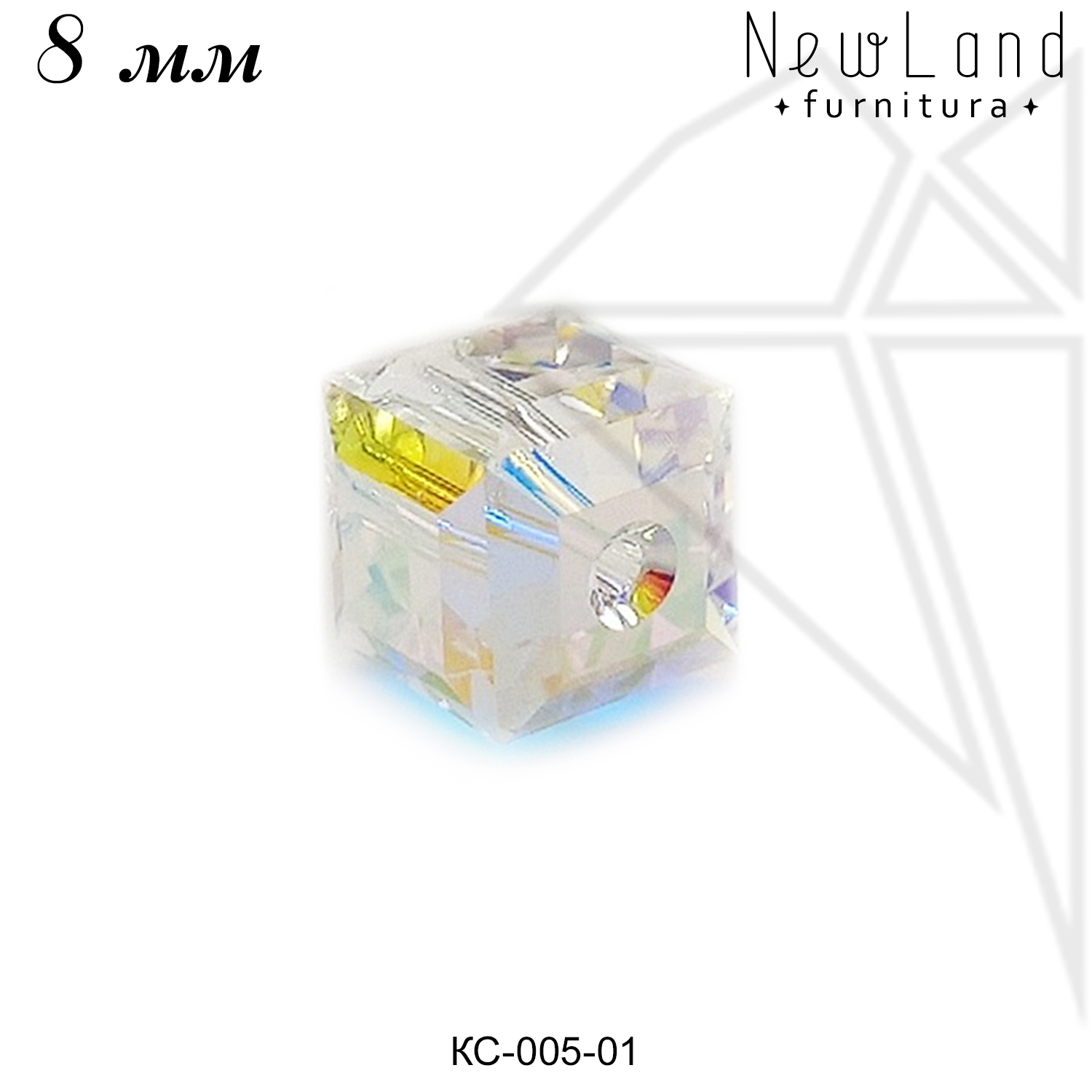 Бусина кристалл Сваровски в форме куба 8 мм, хамелеон (желто-голубые) — Crystal АВ.
