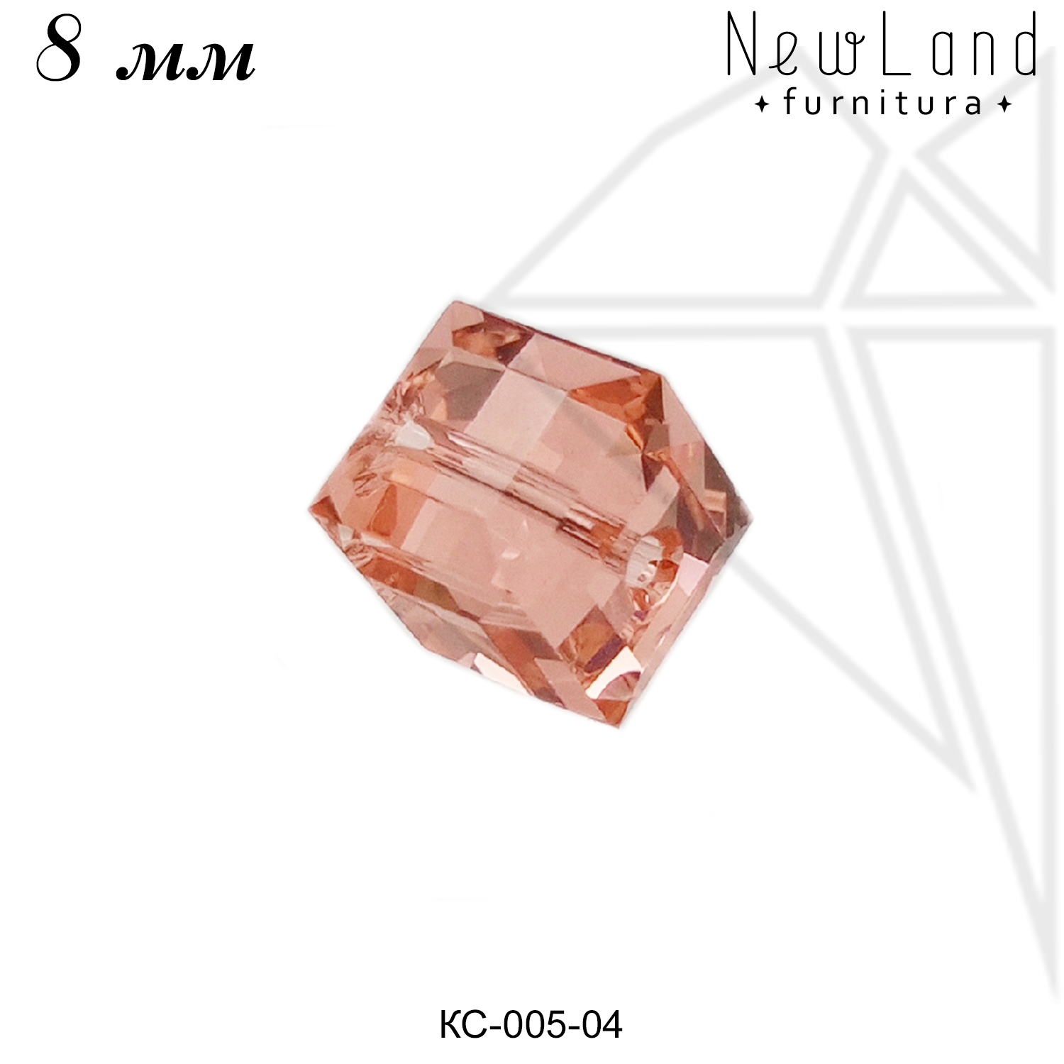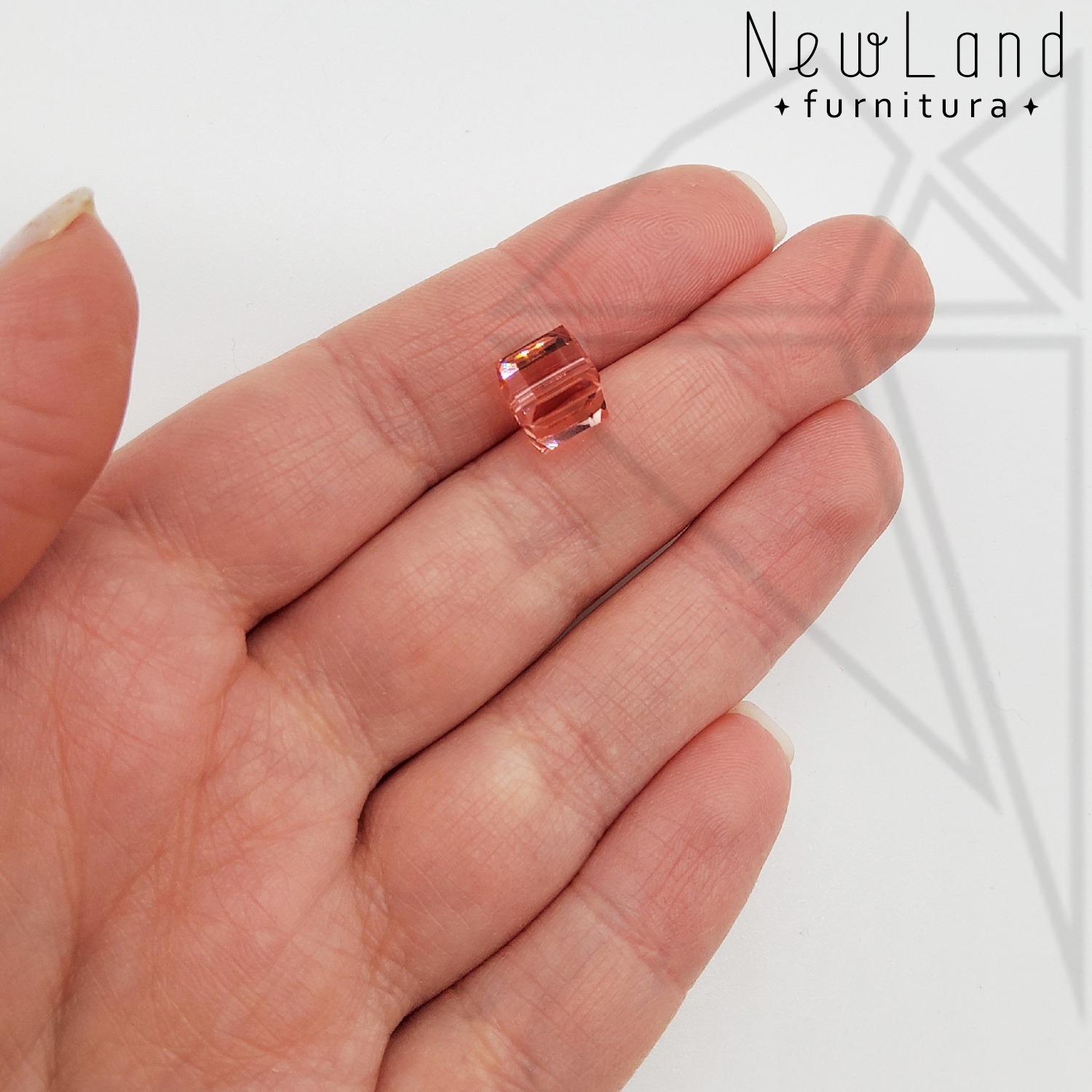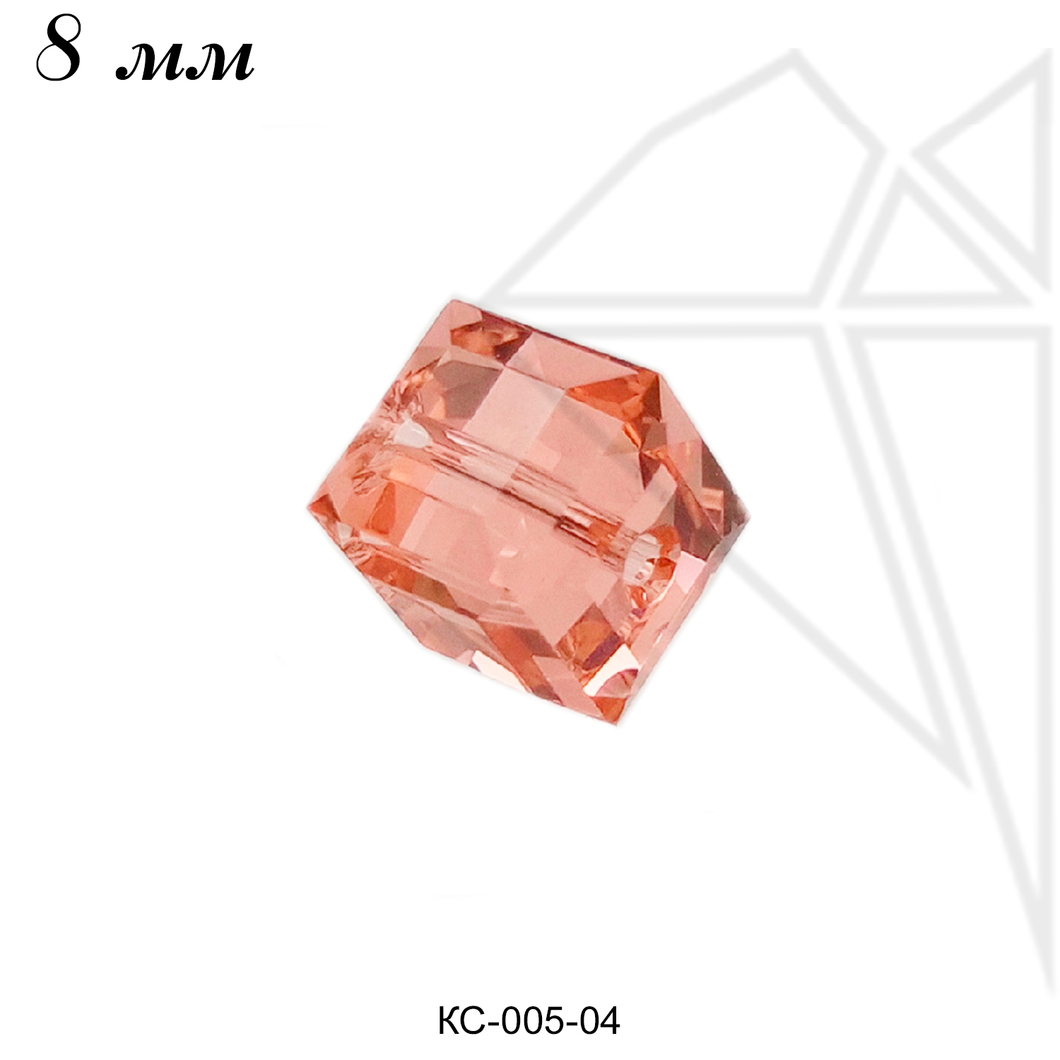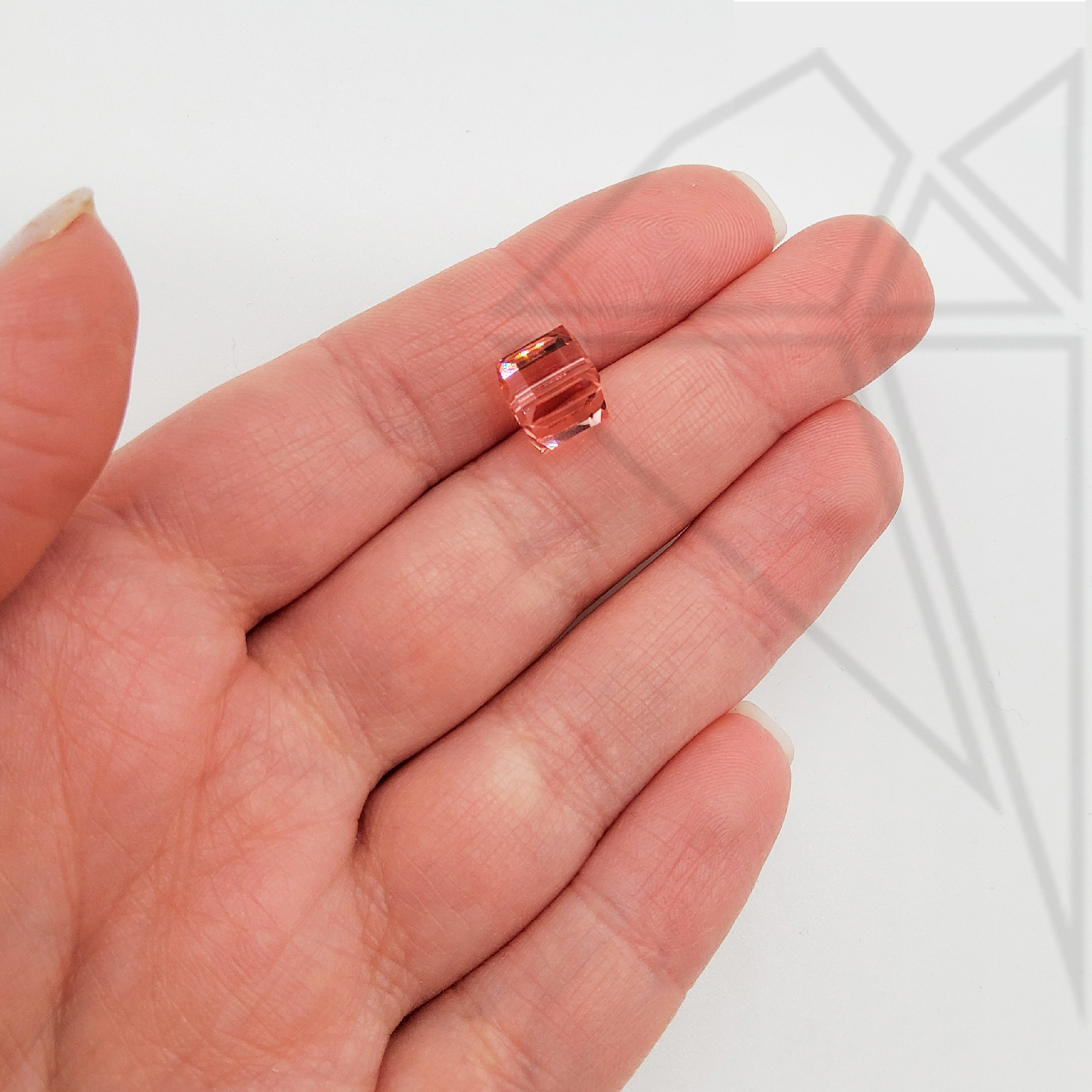 Бусина кристалл Сваровски в форме куба 8 мм, кораллового цвета — Rose Peach.