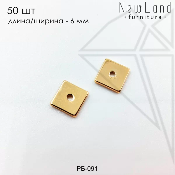 Разделительная бусина в форме плоского квадрата класса люкс с позолоченным покрытием (по латуни).