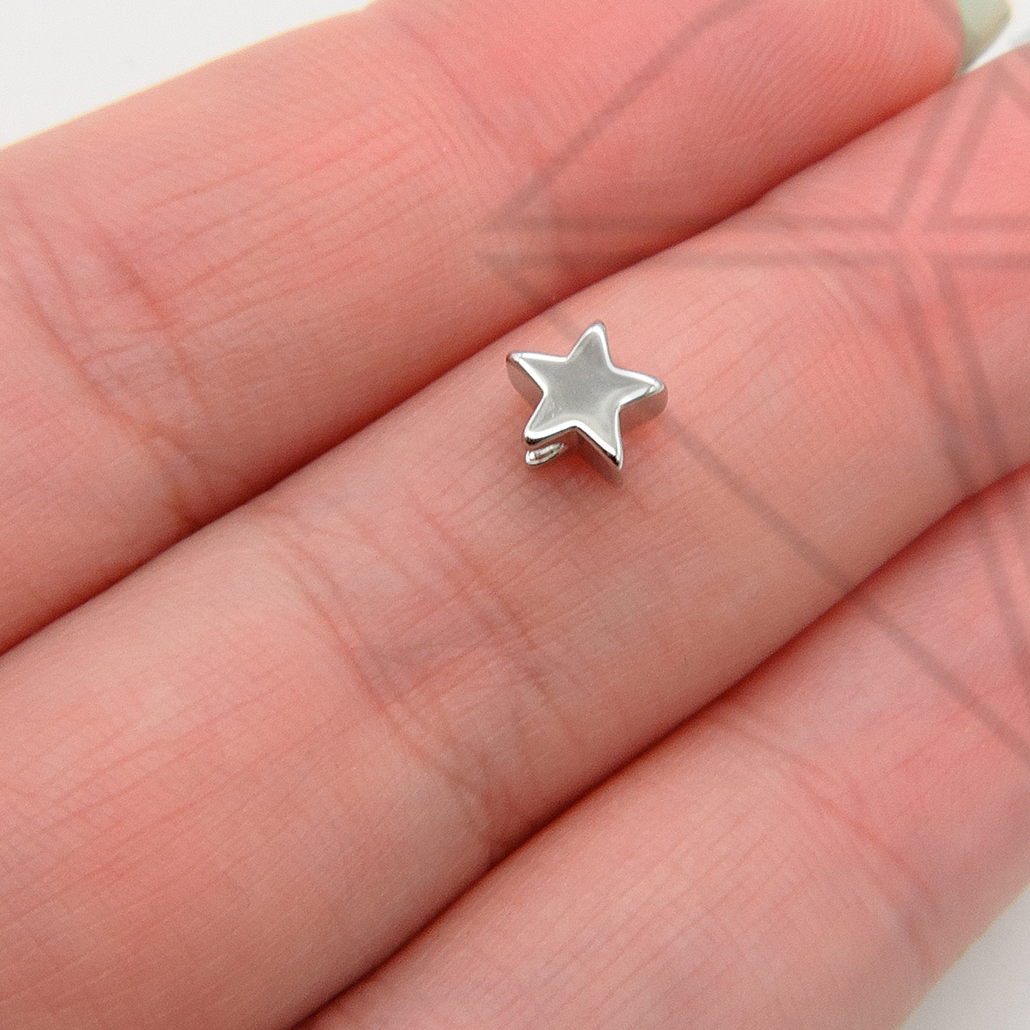 Бусины в форме звездочек класса люкс с родированным покрытием (по латуни).