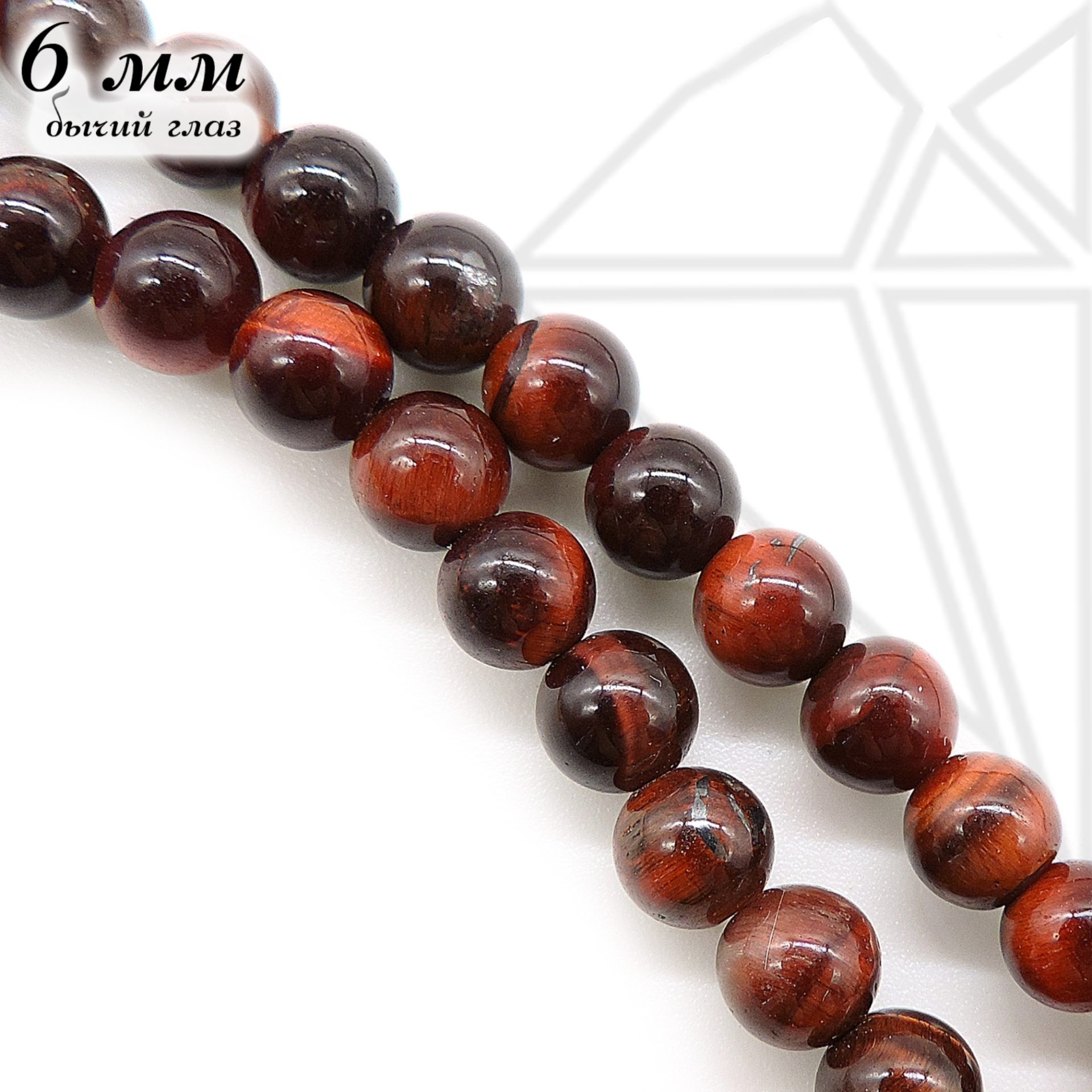 Камень «Бычий Глаз» натуральный круглой формы 6 мм.