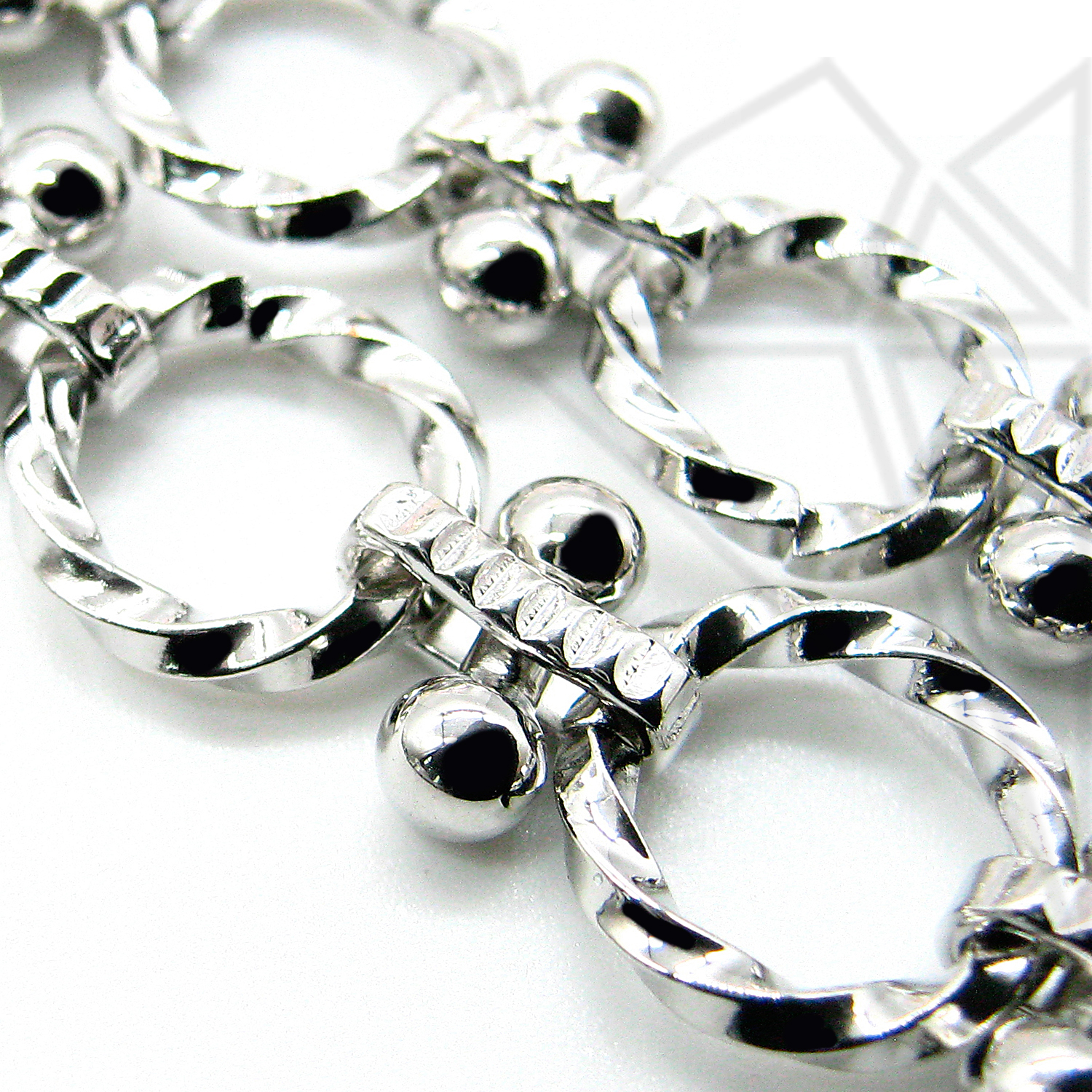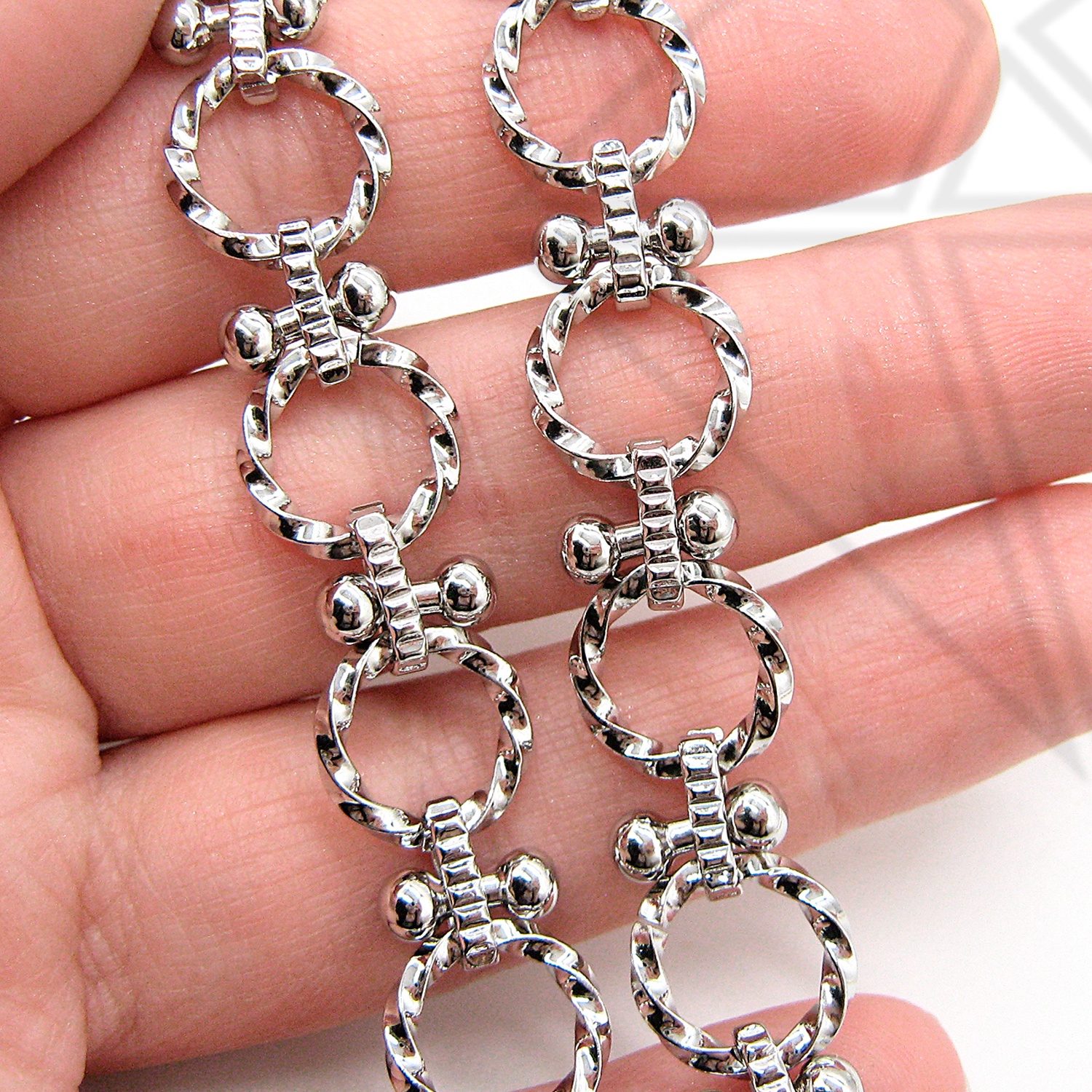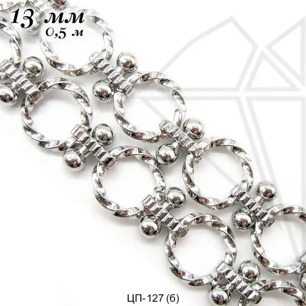 Цепь из ювелирного сплава, комбинированная, с родированным покрытием.