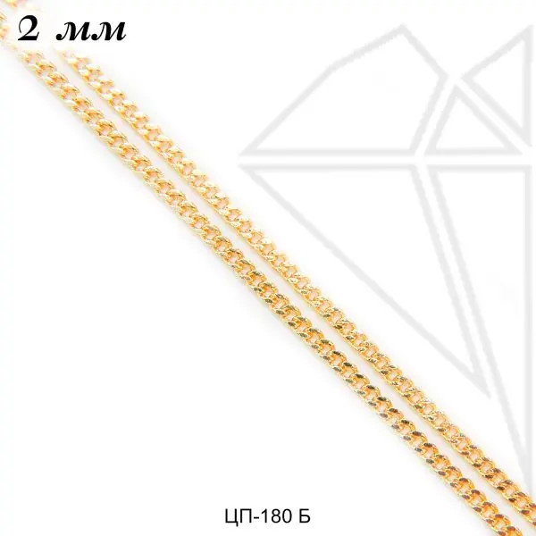 Цепь из ювелирного сплава панцирного плетения с позолоченным покрытием.