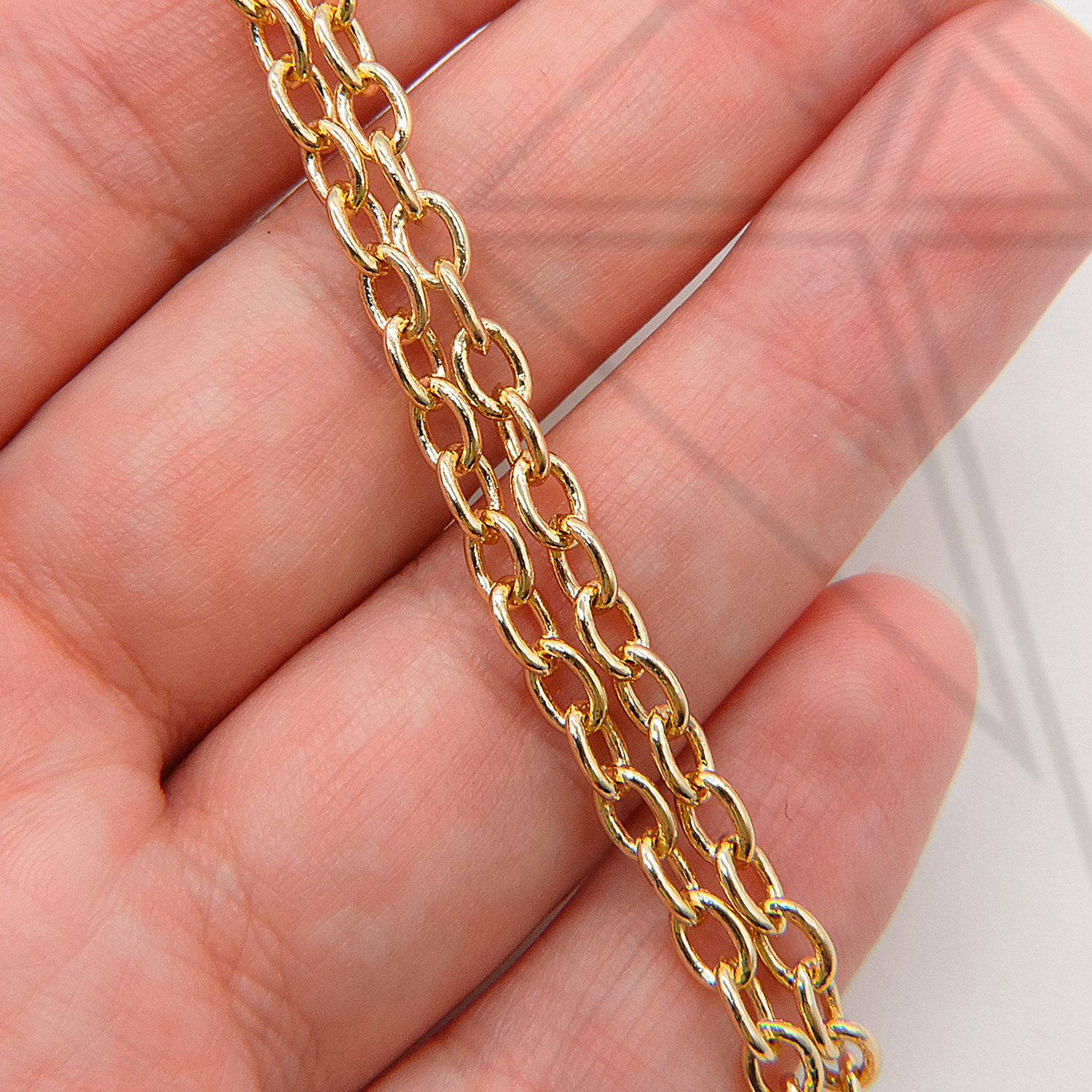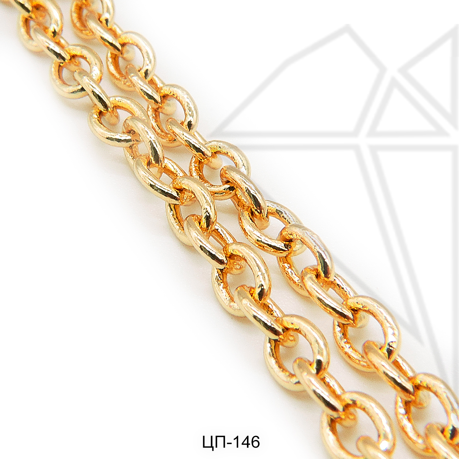 Цепь из ювелирного сплава, с овальными звеньями якорного плетения, с позолоченным покрытием.