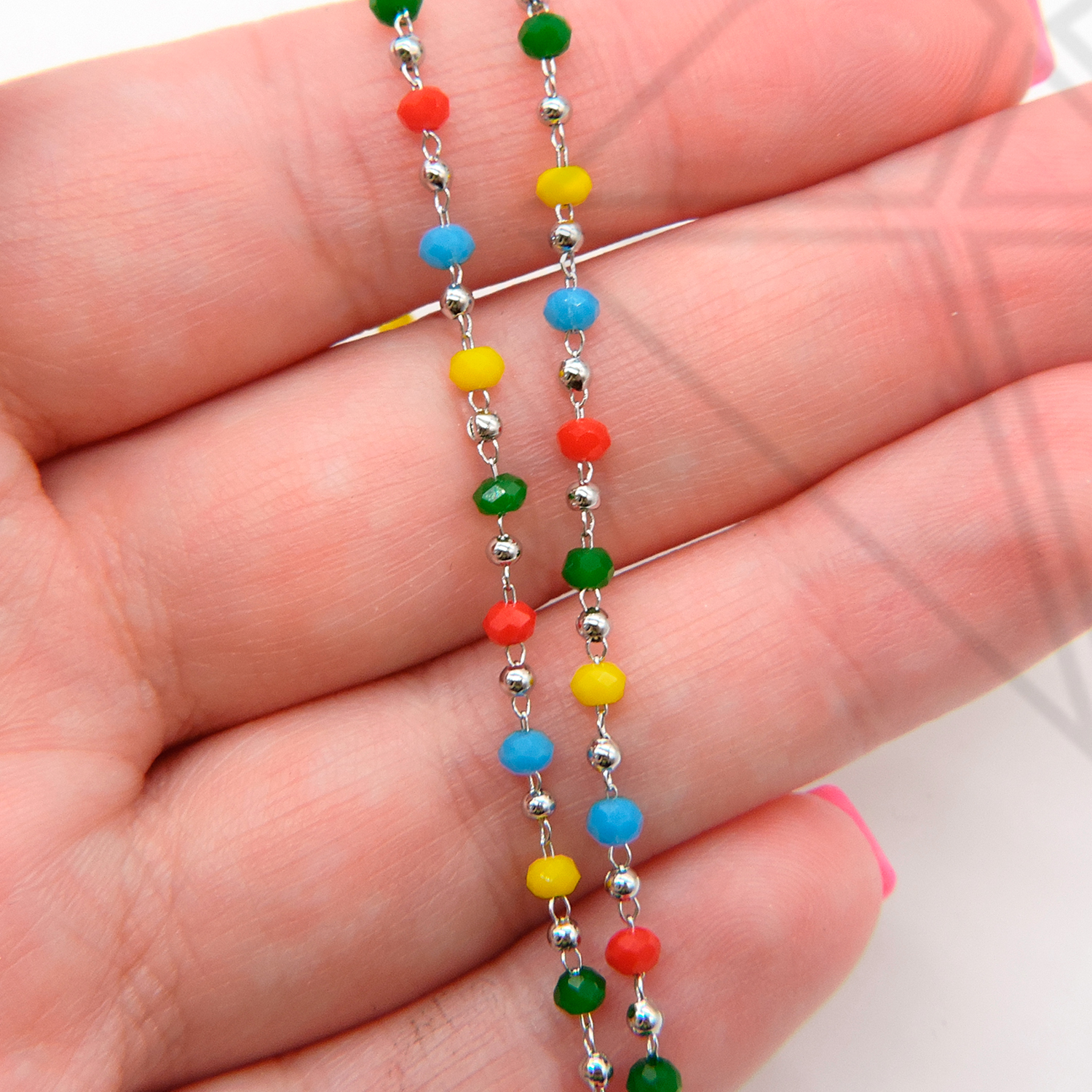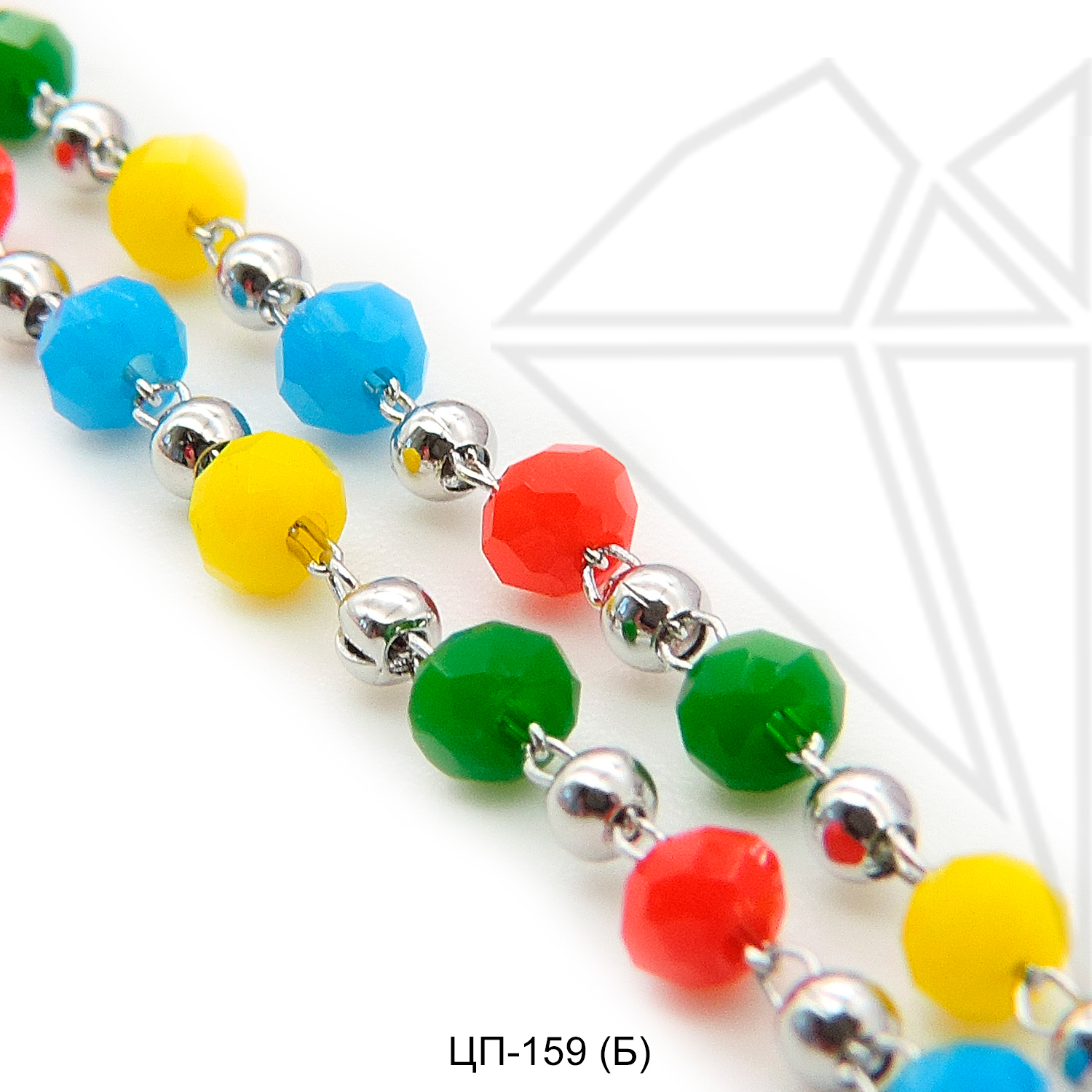 Цепь с цветными бусинами и шариками класса люкс с родированным покрытием (по латуни).