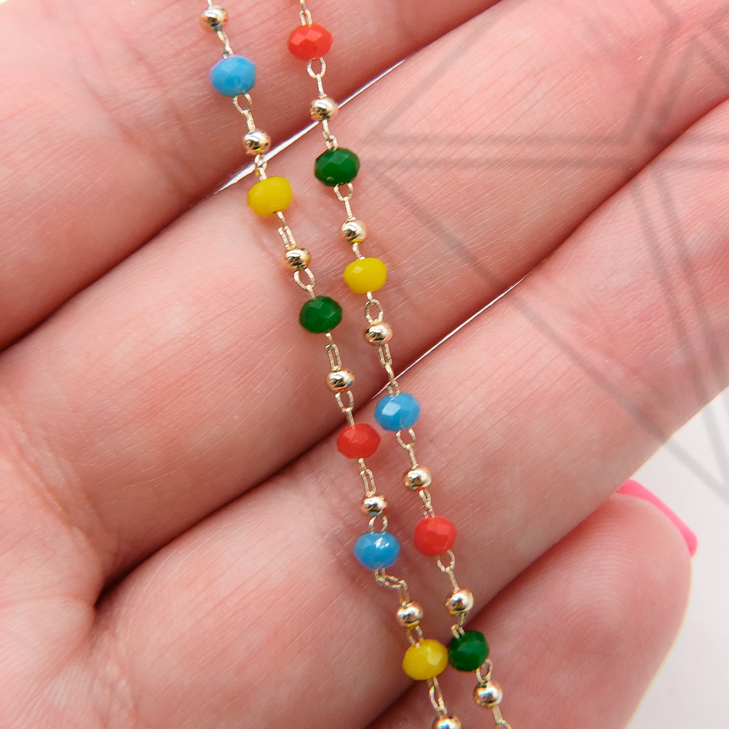Цепь с цветными бусинами и шариками класса люкс с позолоченным покрытием (по латуни).