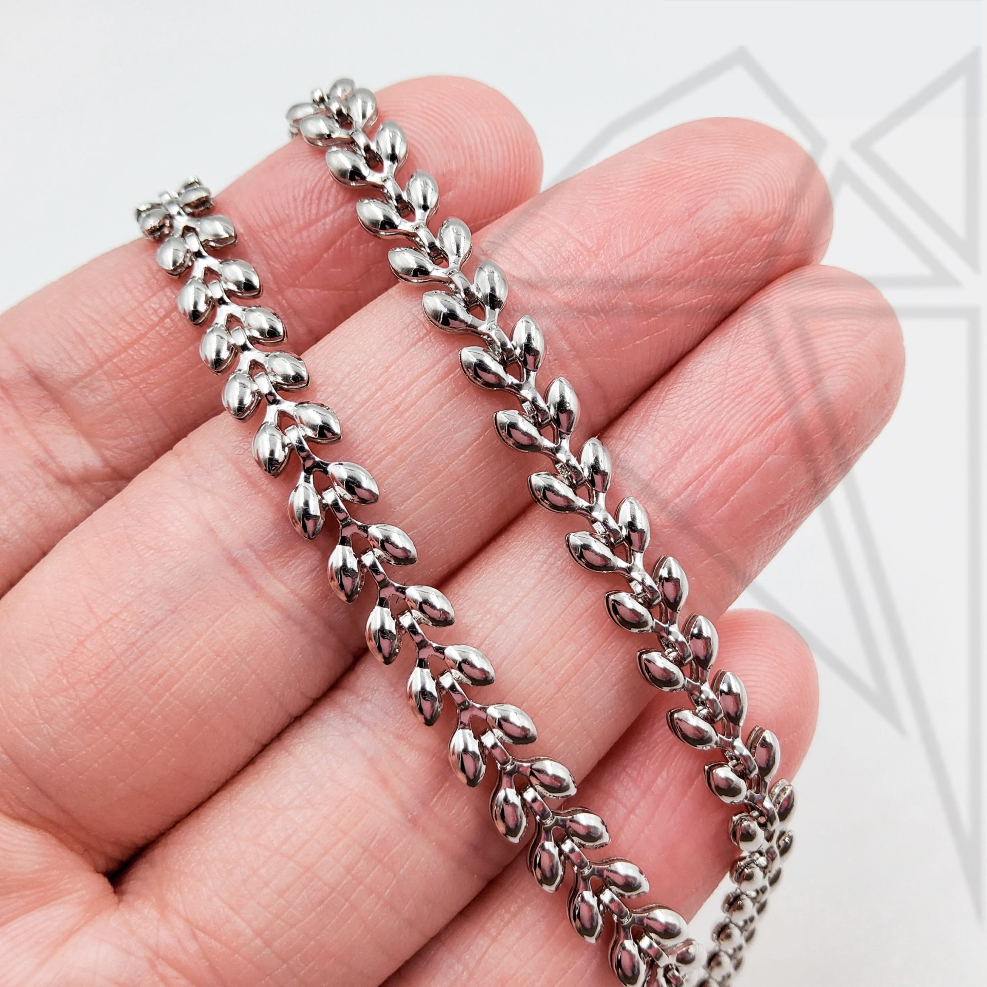 Цепь из ювелирного сплава с родированным покрытием.