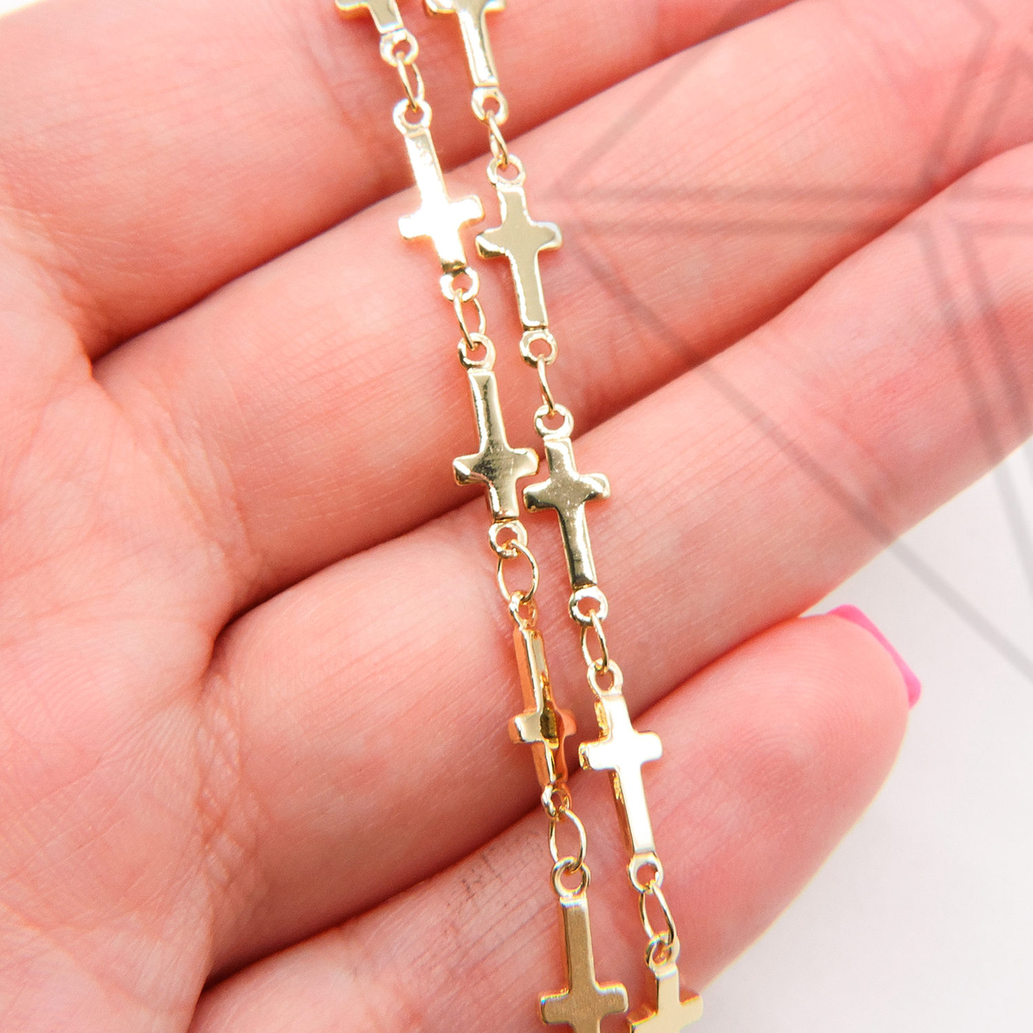 Цепь из ювелирного сплава с крестиками с позолоченным покрытием.