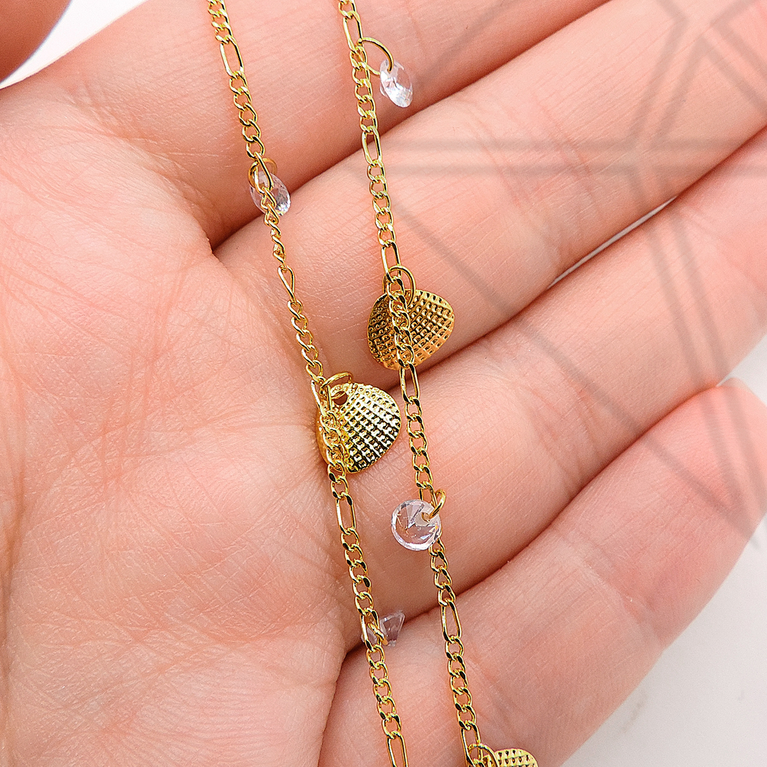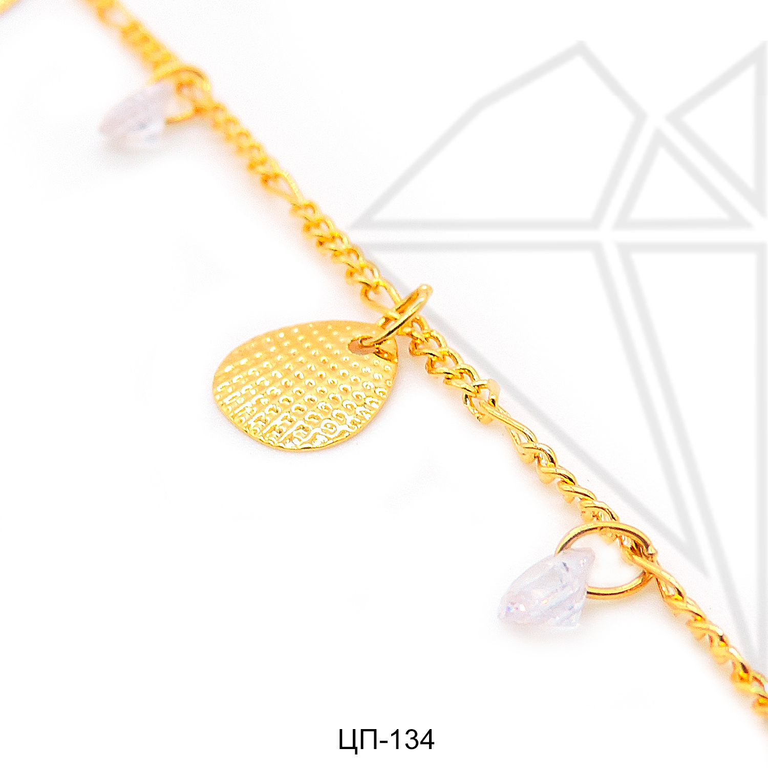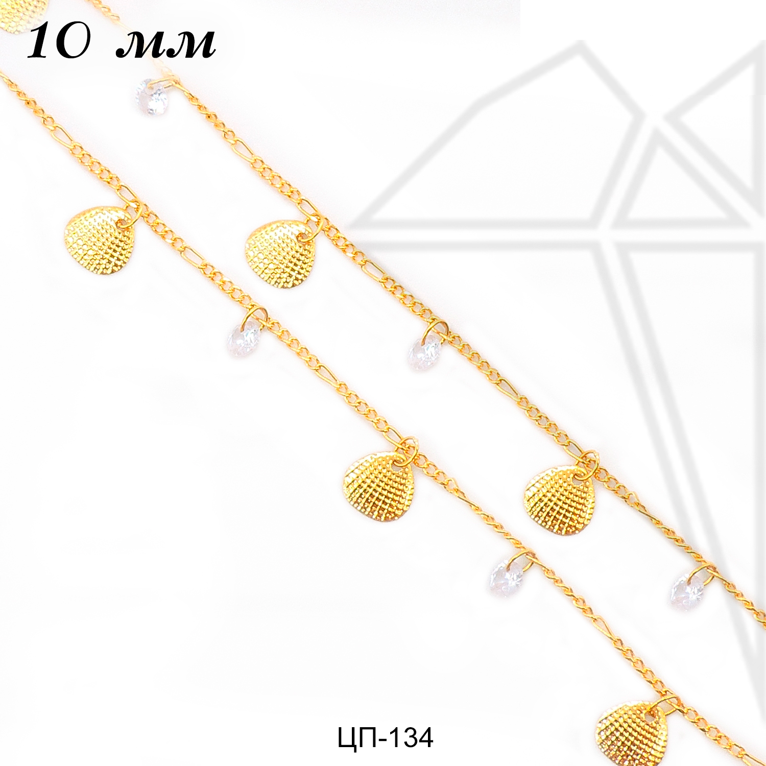 Цепь из ювелирного сплава панцирного плетения с ракушками и фианитами, с позолоченным покрытием.