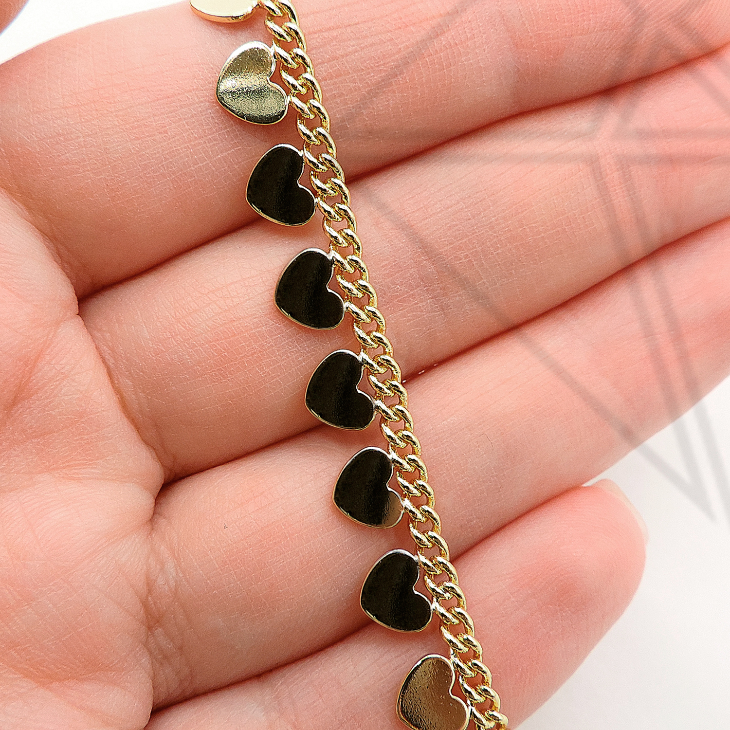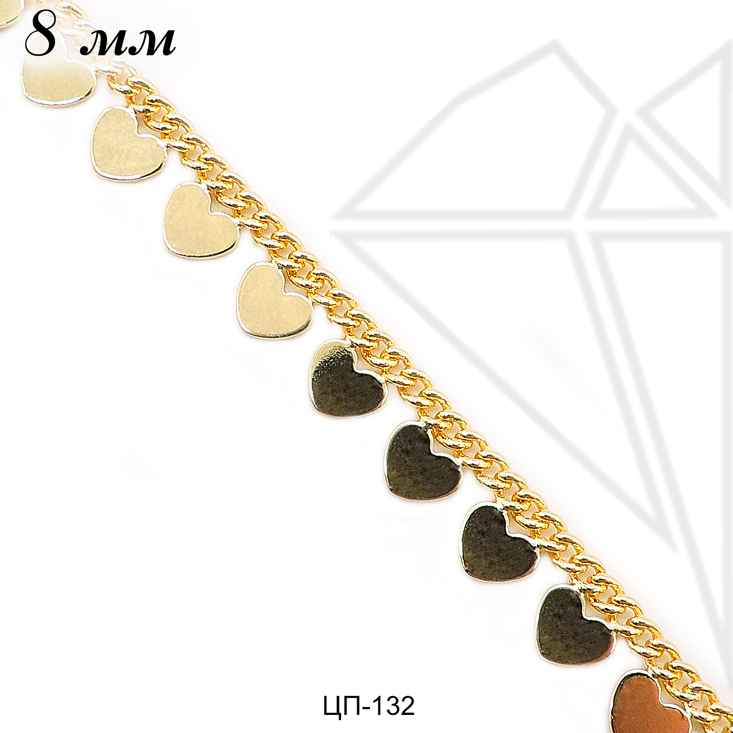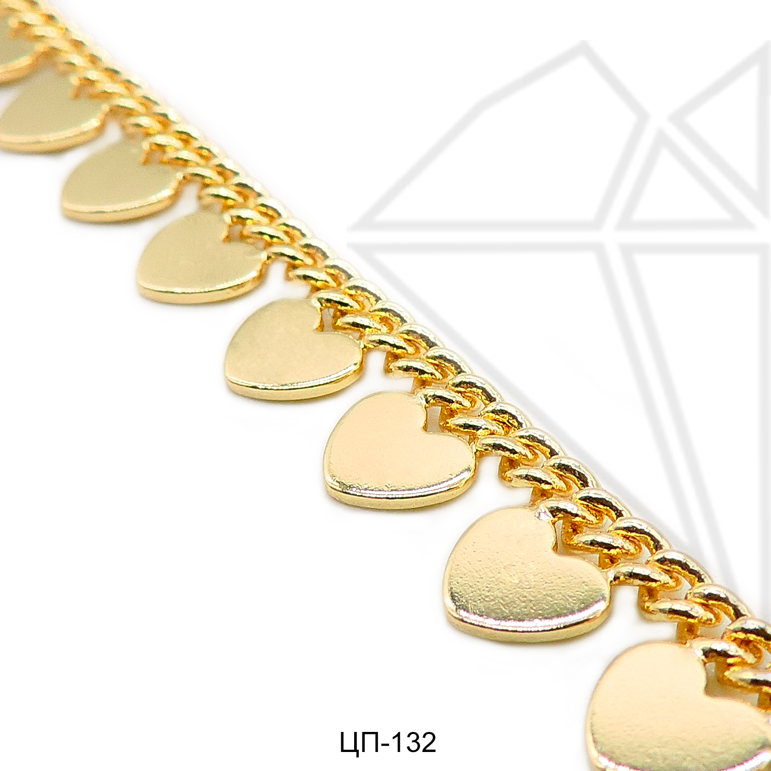 Цепь из ювелирного сплава панцирного плетения с сердечками, с позолоченным покрытием.