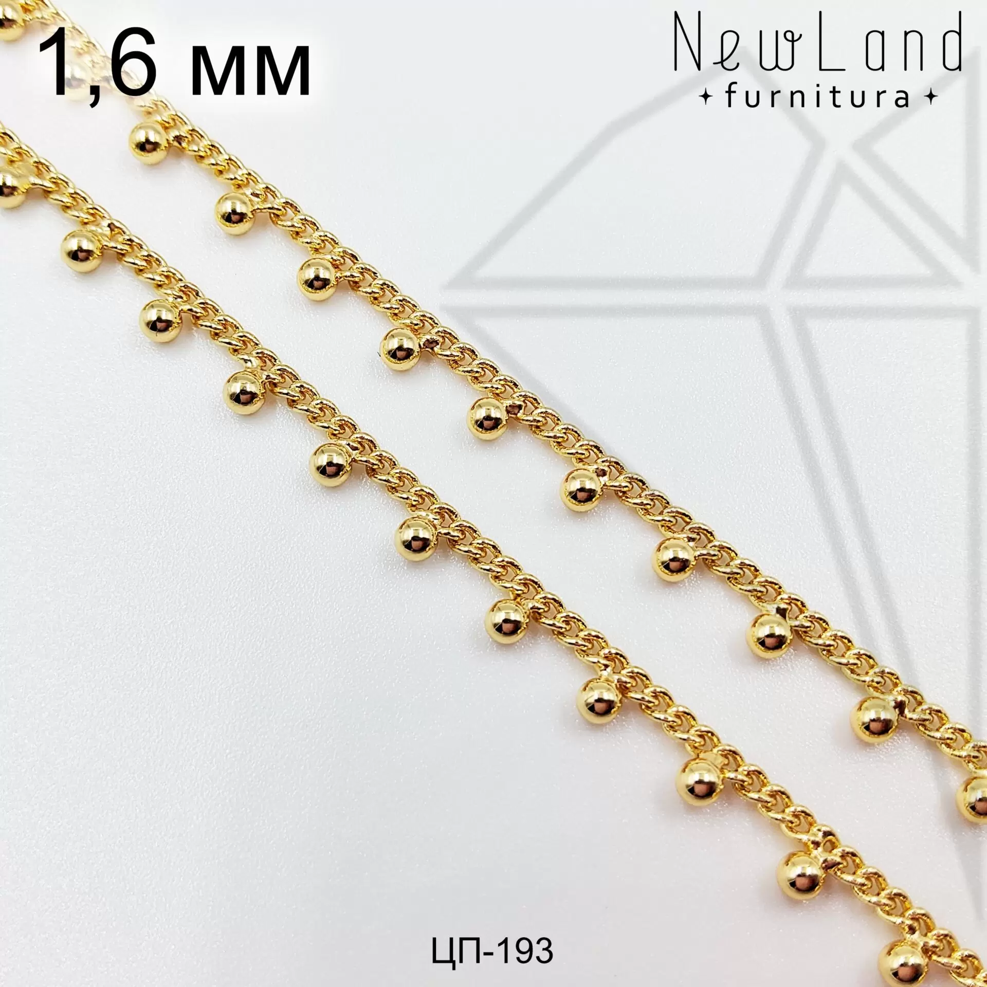 Цепь панцирного плетения с шариками из ювелирного сплава с позолоченным покрытием.