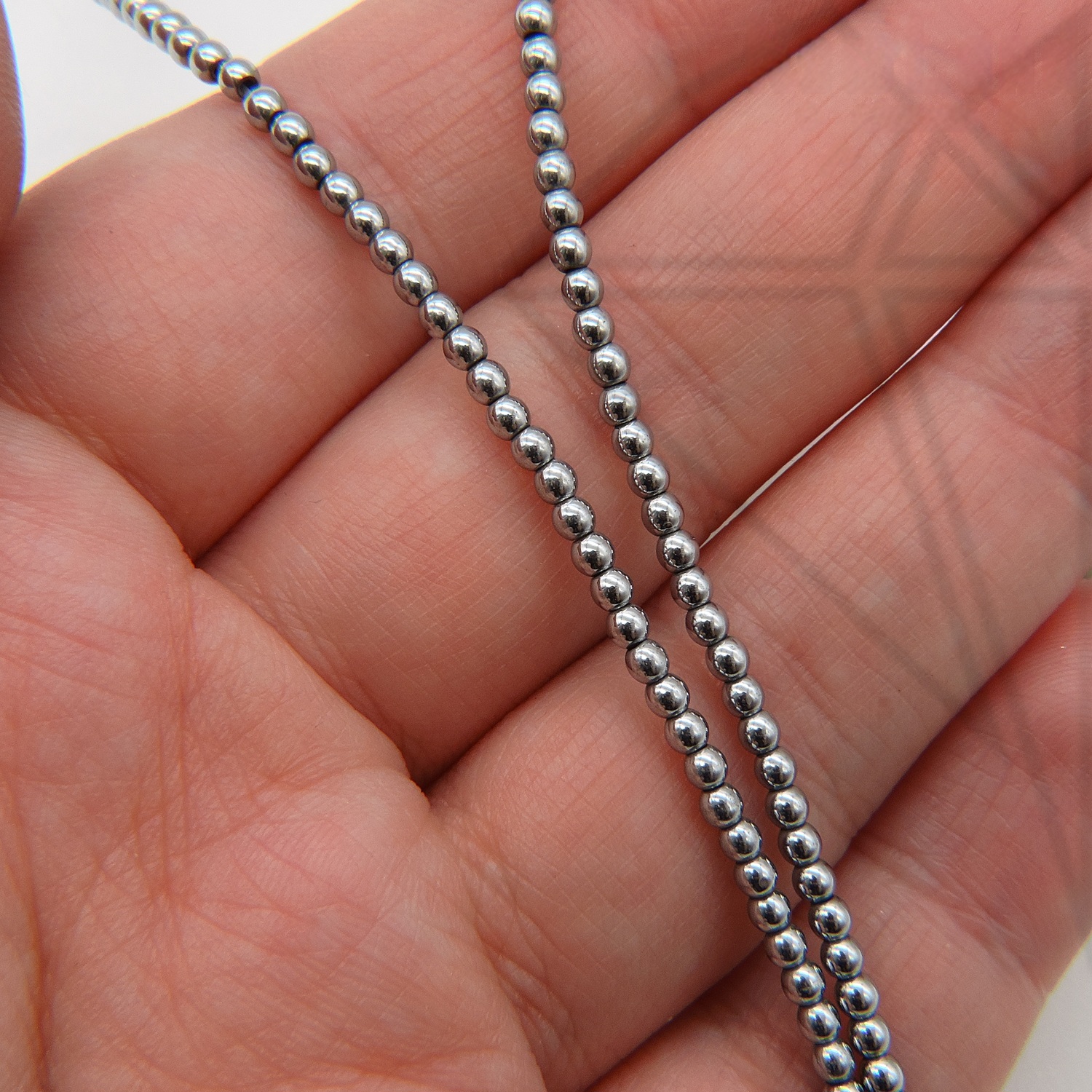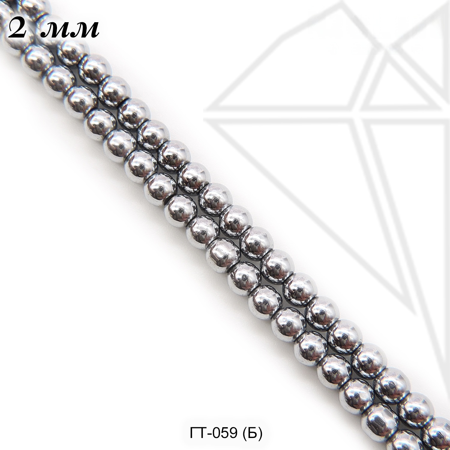 Гематит круглой гладкой формы 2 мм серебристого цвета.