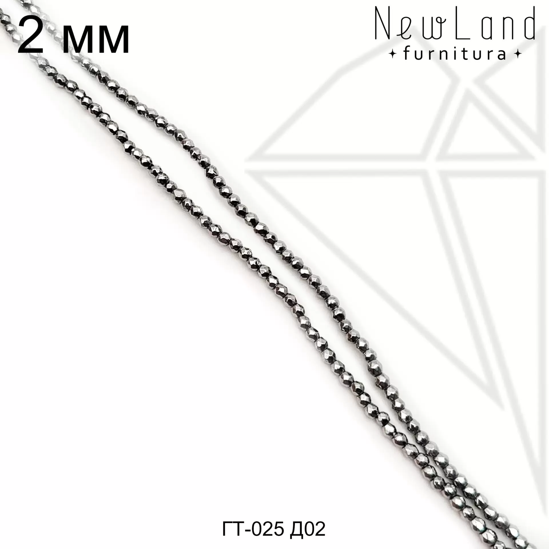 Гематит круглый с огранкой 2 мм серебристого цвета.