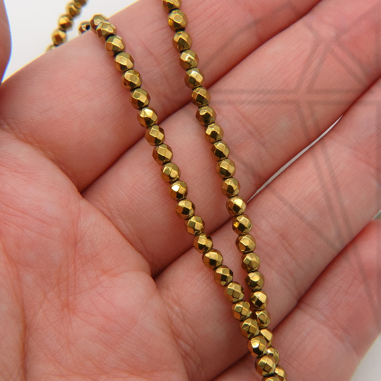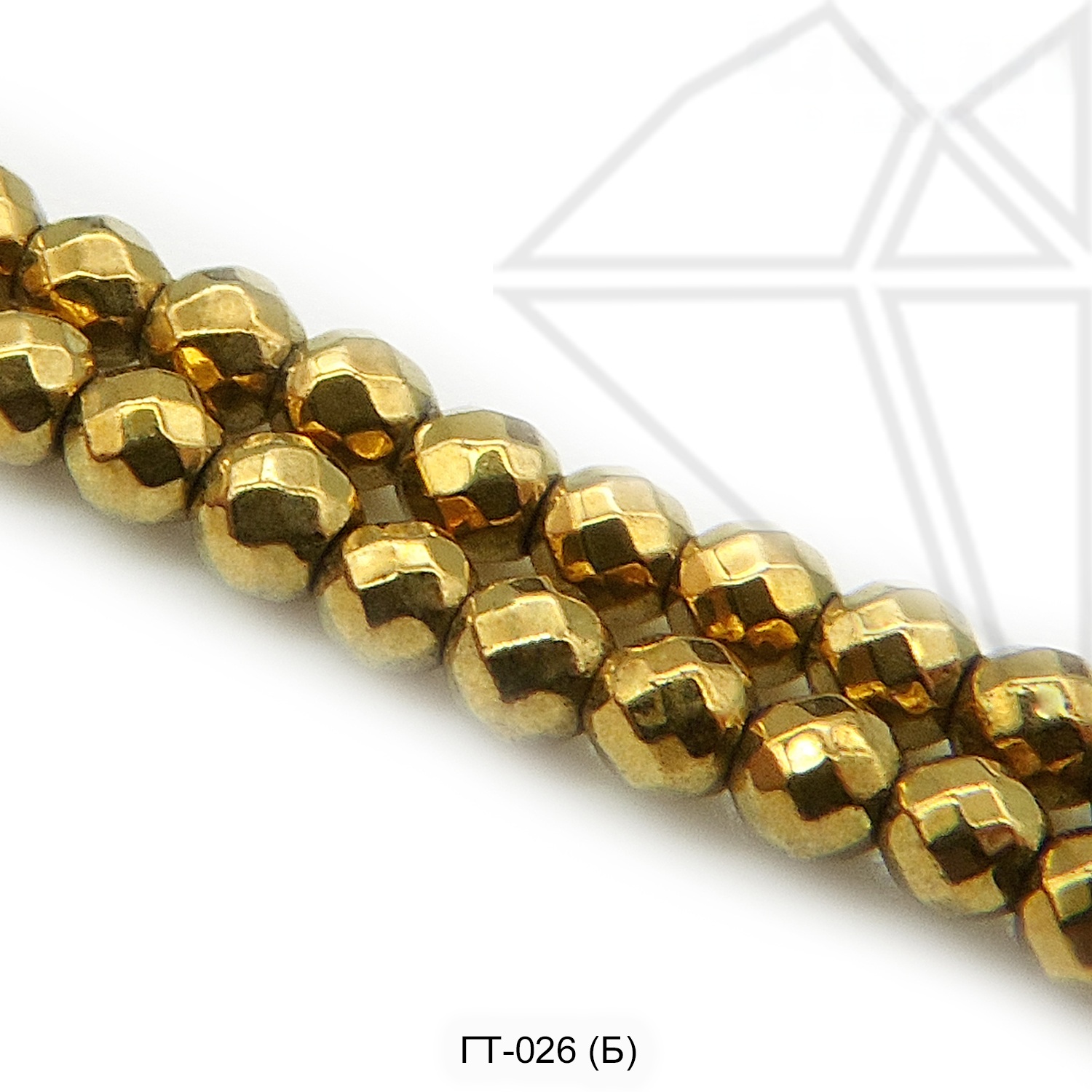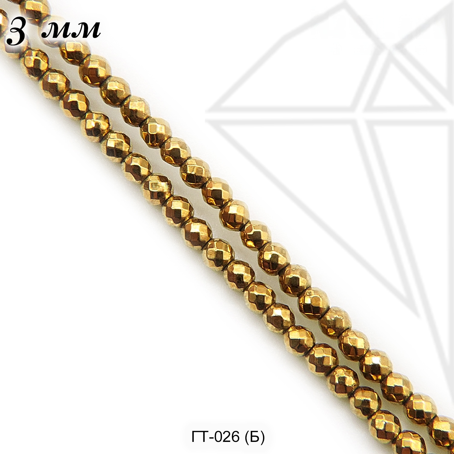Гематит круглый с огранкой 3 мм золотого цвета.