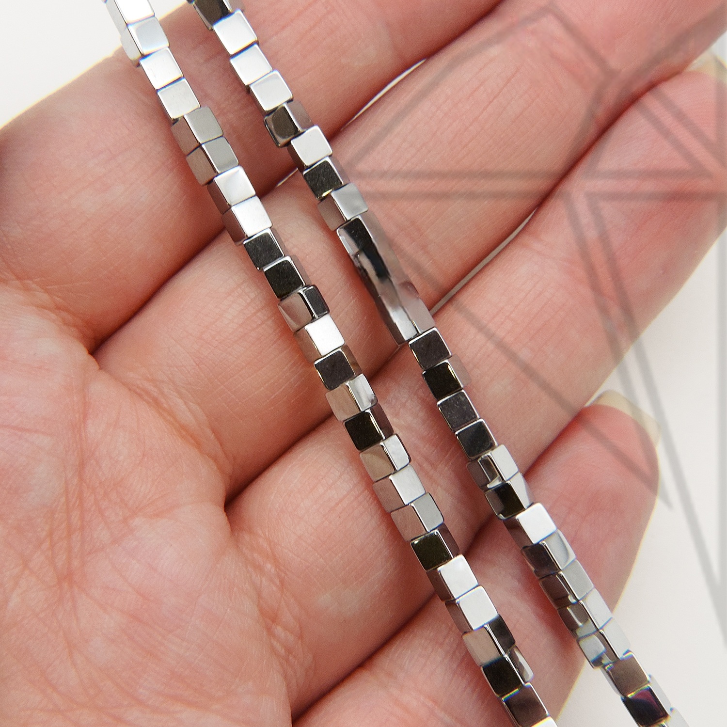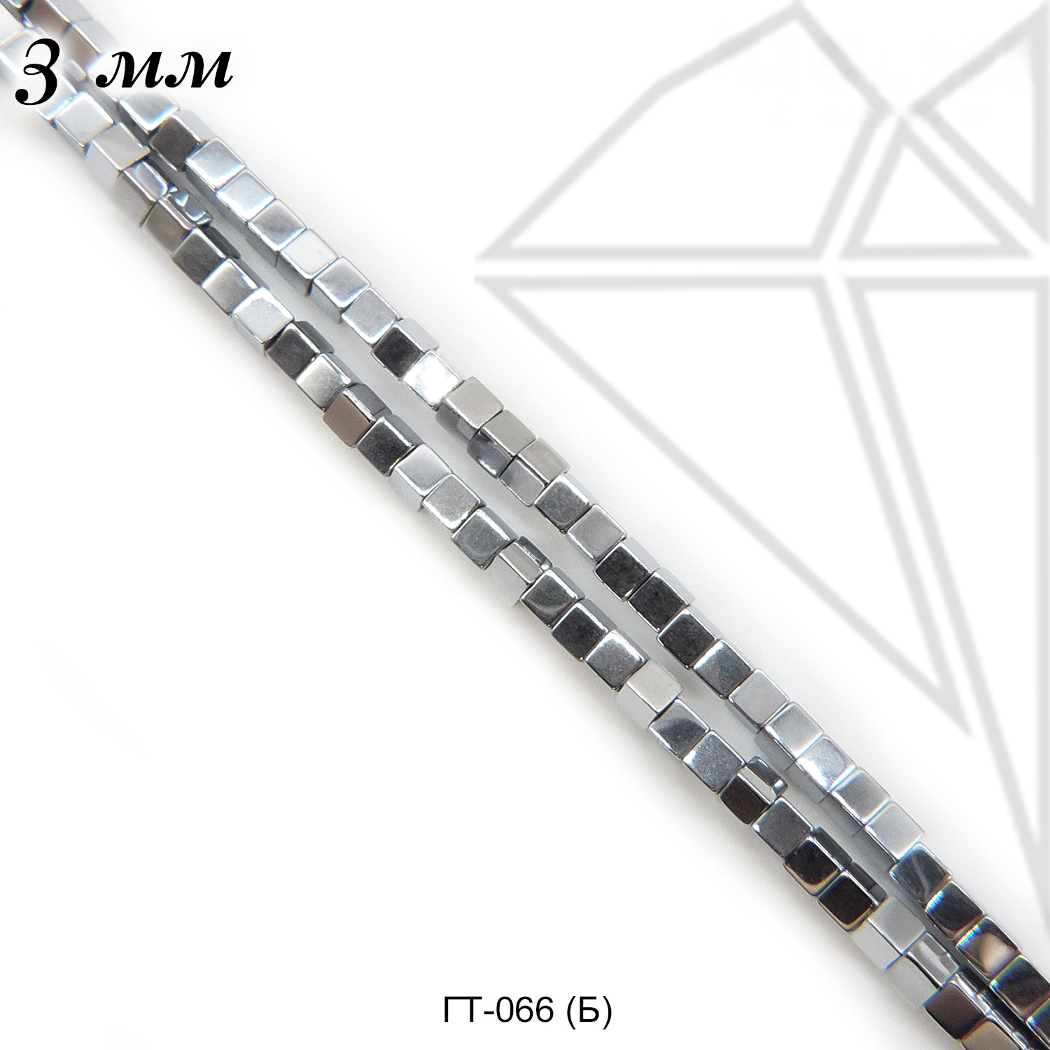 Гематит куб гладкий 3 мм серебряного цвета.