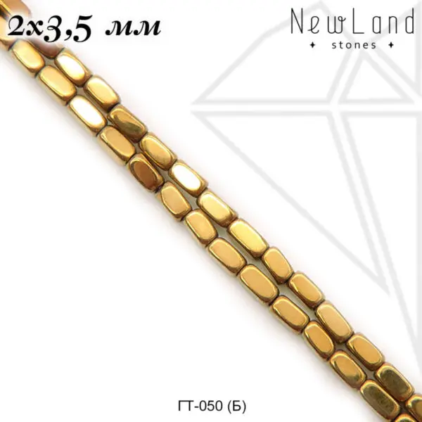Гематит прямоугольный 2х3,5 мм золотого цвета.
