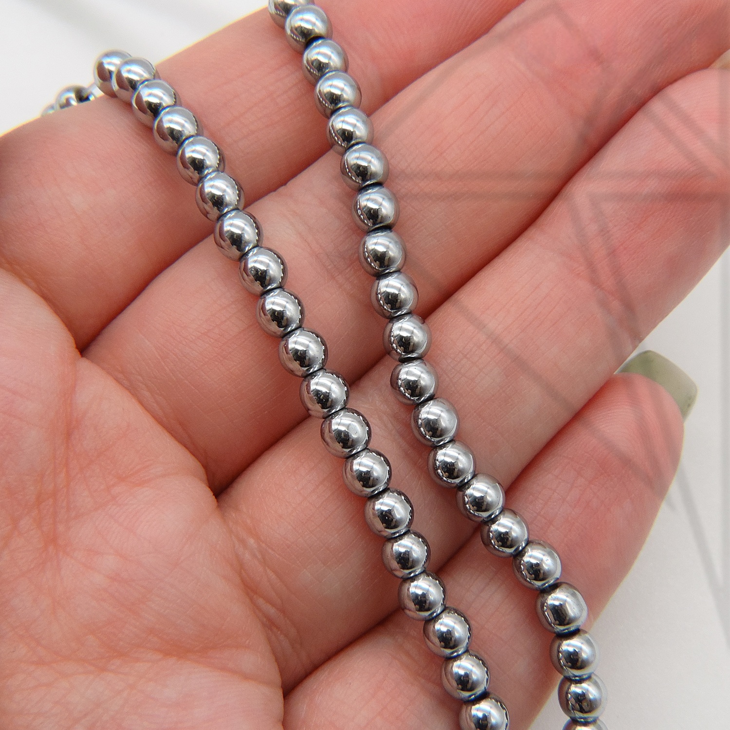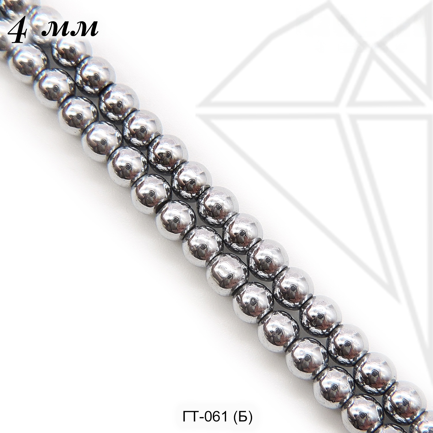 Гематит круглой гладкой формы 4 мм серебристого цвета.