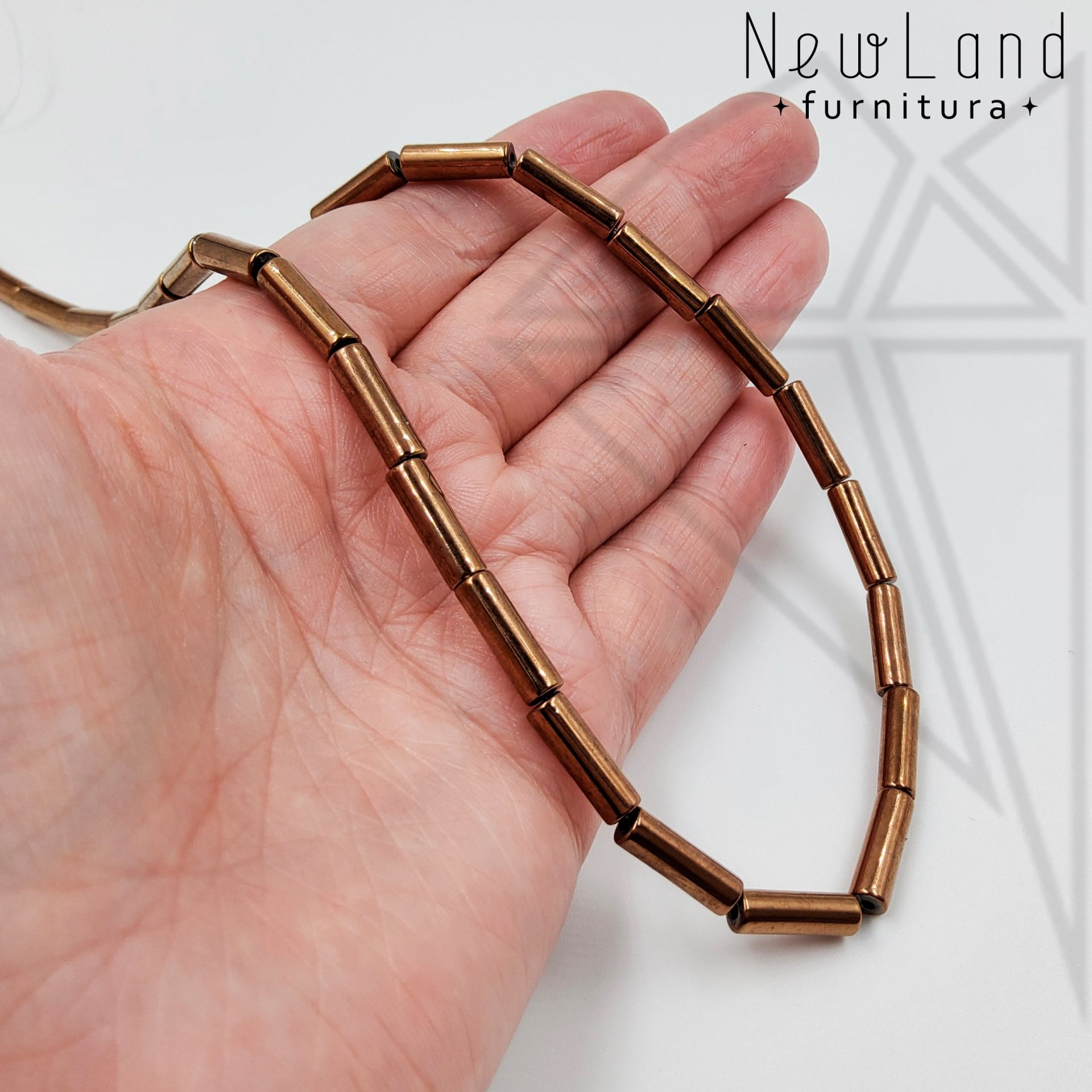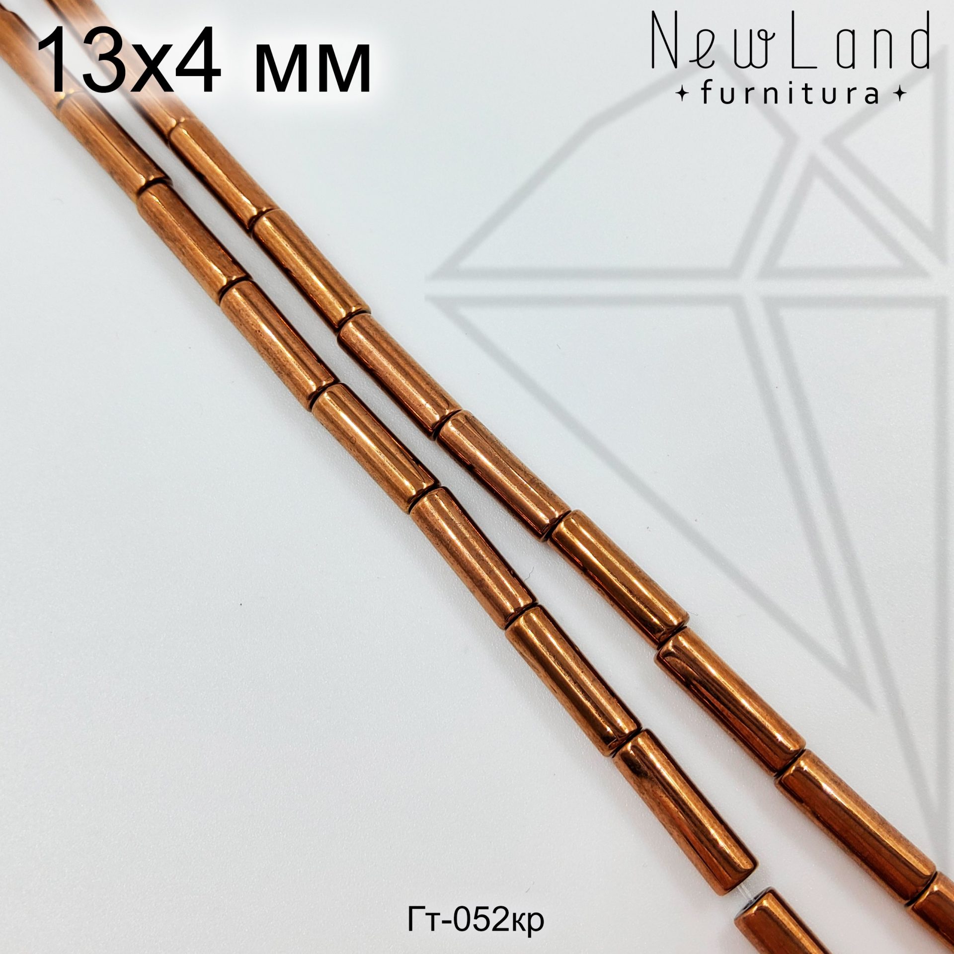 Гематит в форме круглого цилиндра (трубочки) 4х13 мм коричневого цвета.