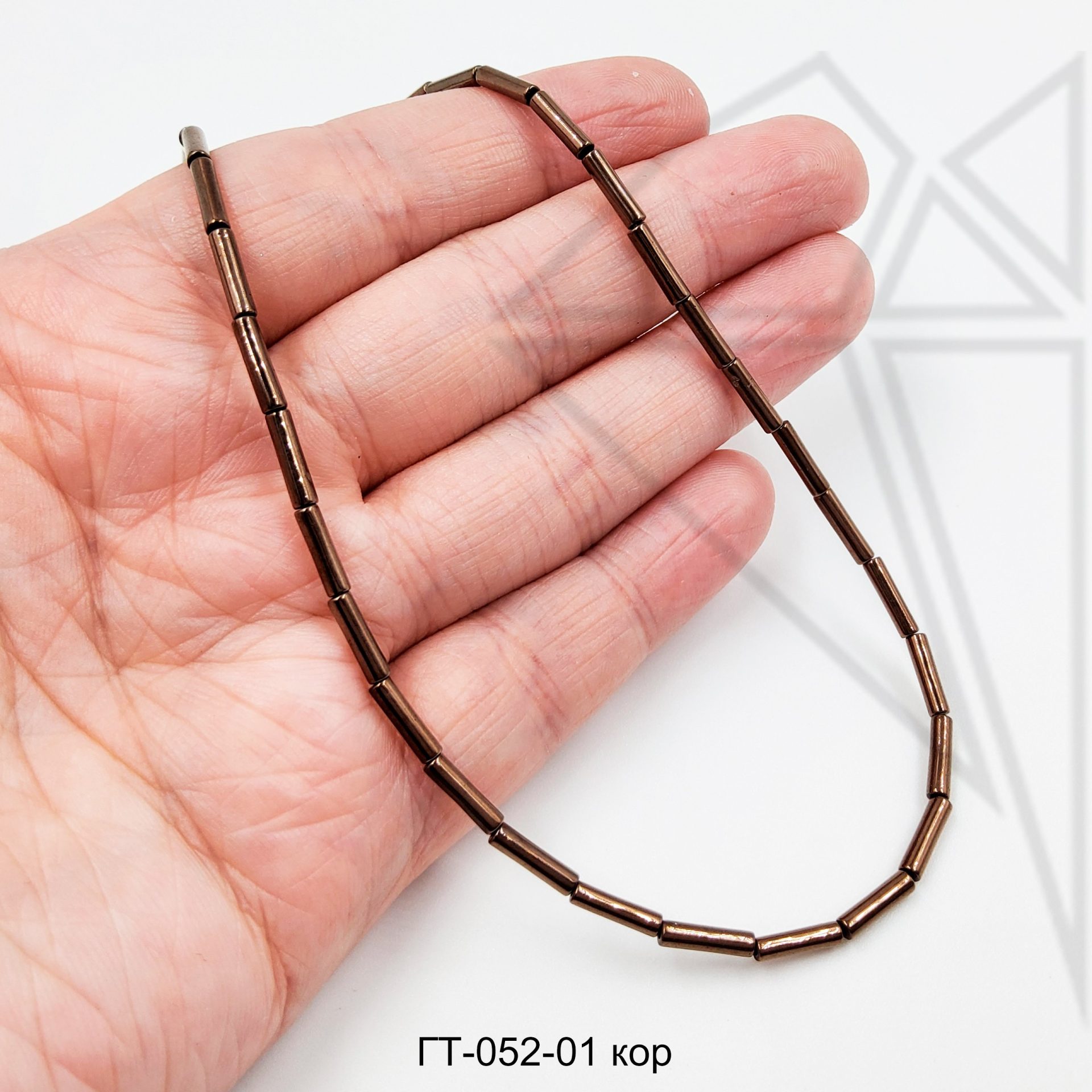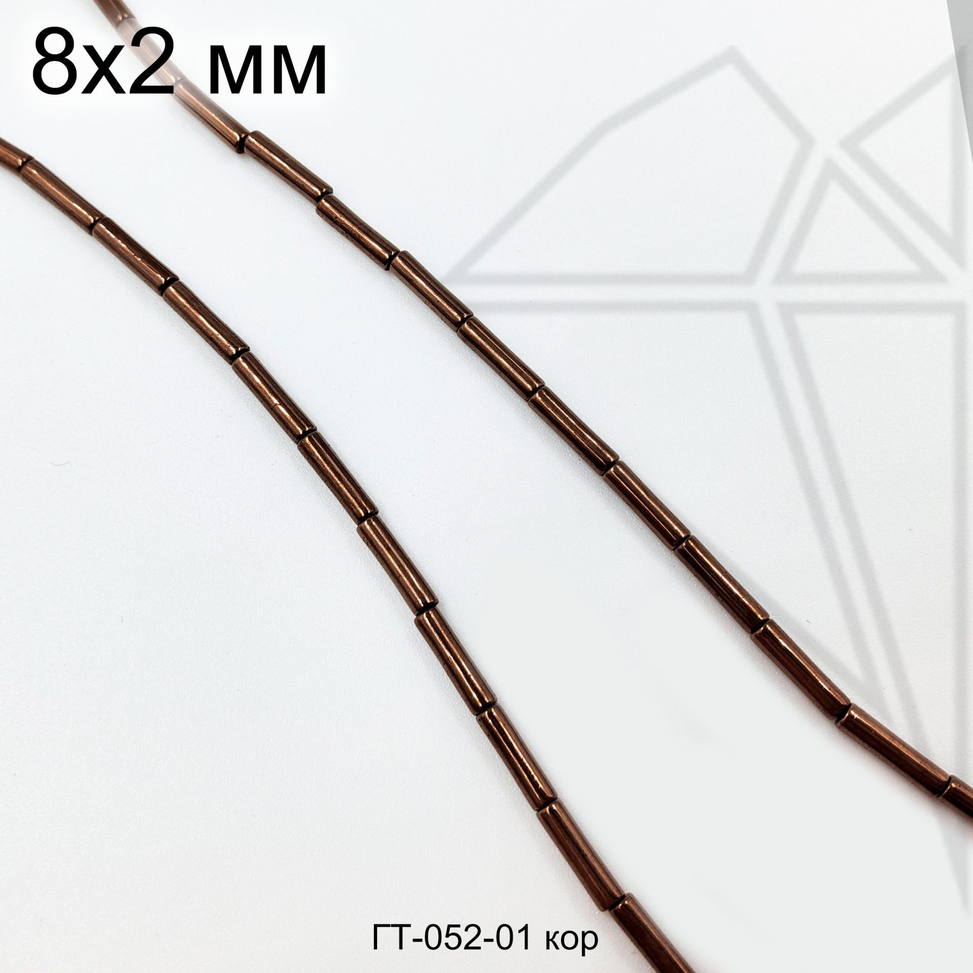 Гематит в форме круглого цилиндра (трубочки) 8х2 мм коричневого цвета.