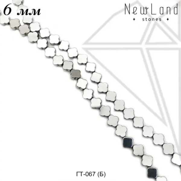 Гематит в форме клевера 6 мм серебристого цвета.