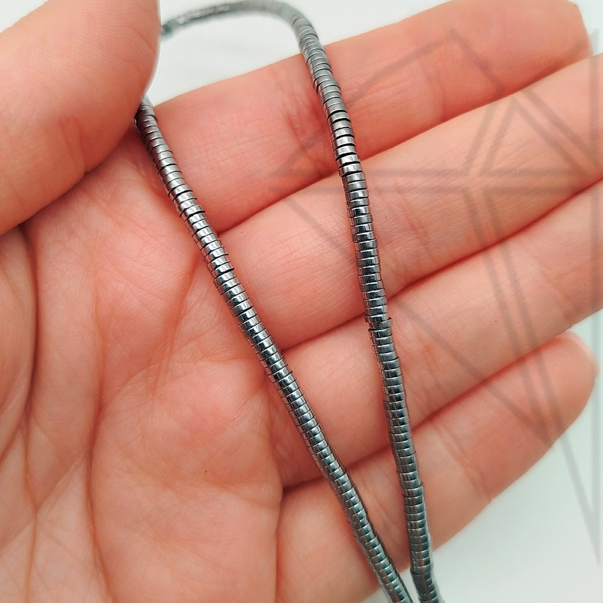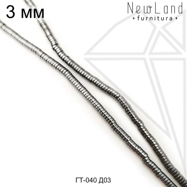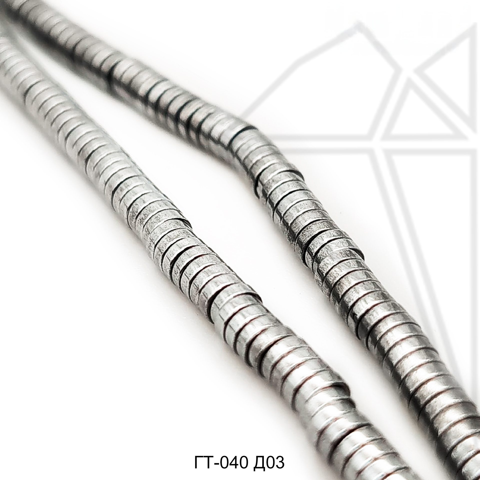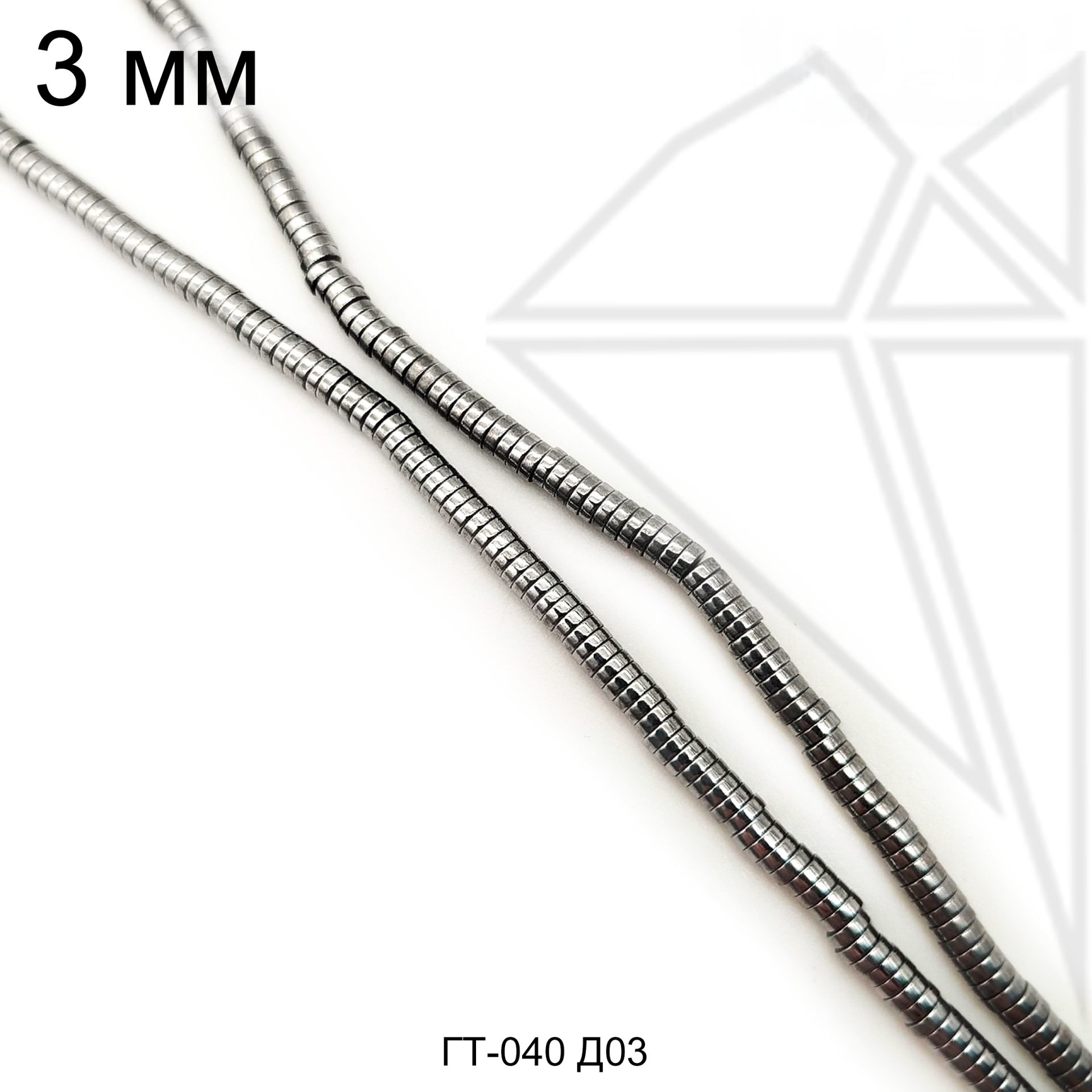Гематит гладкий в форме диска диаметром 3 мм серебристого цвета.