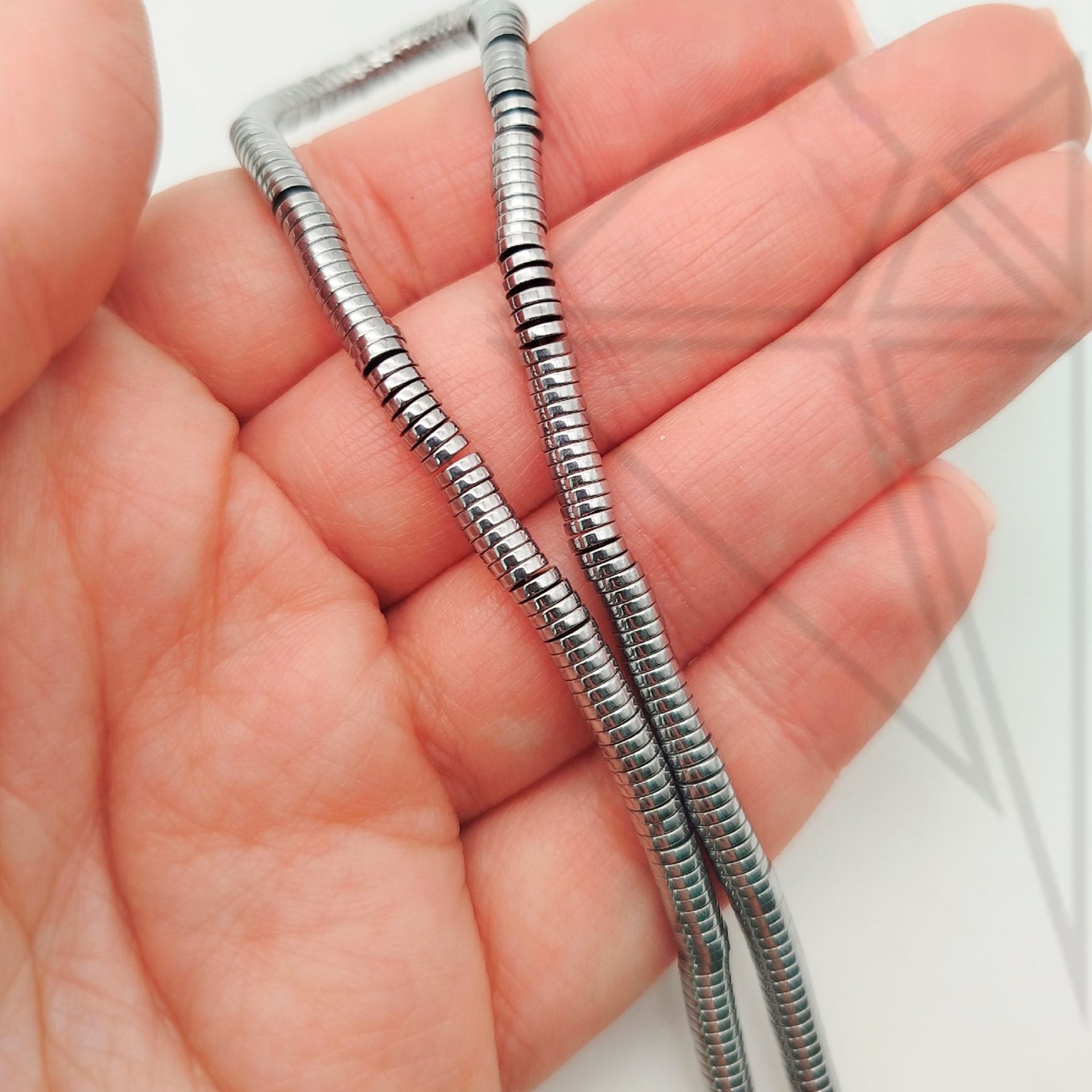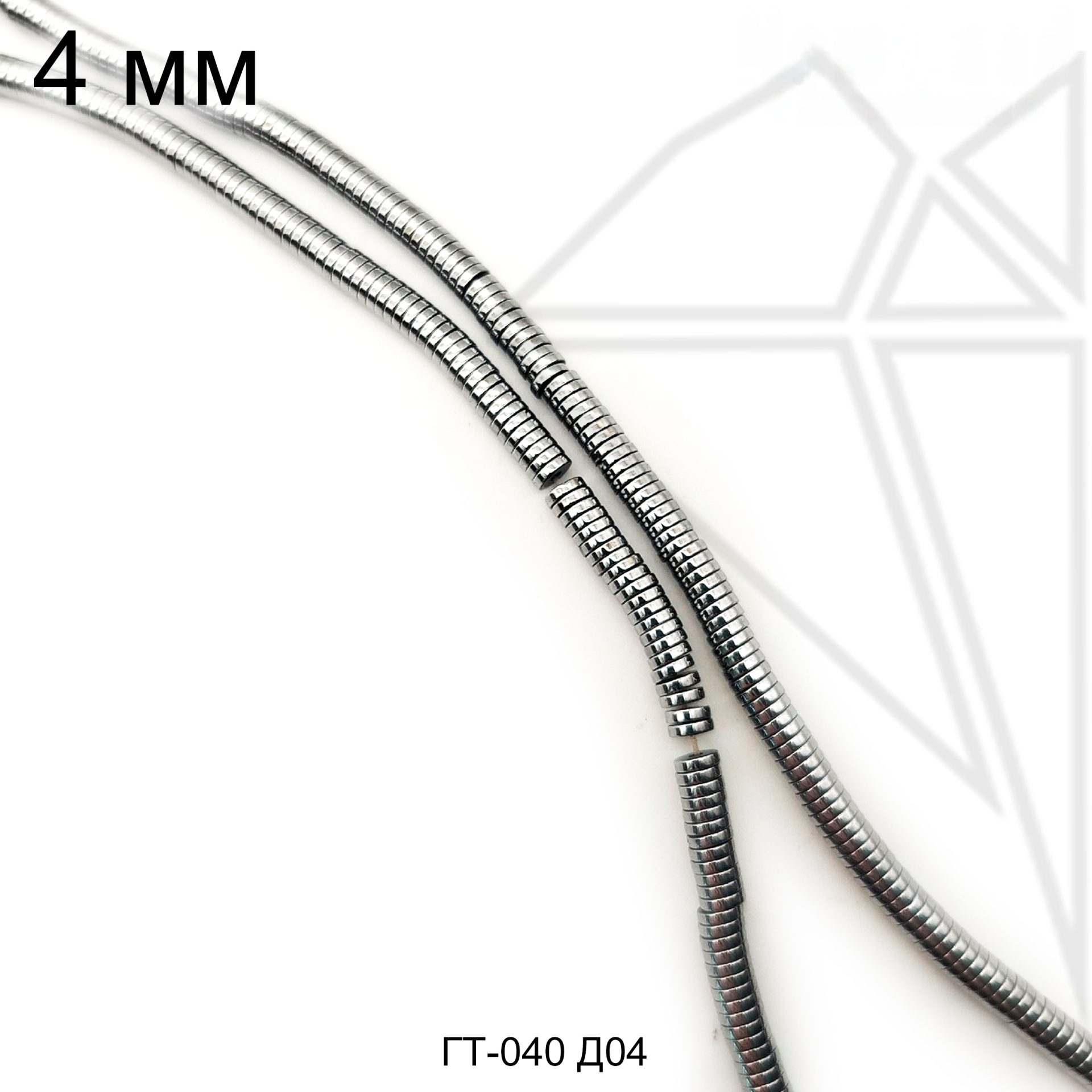 Гематит гладкий в форме диска диаметром 4 мм серебристого цвета.