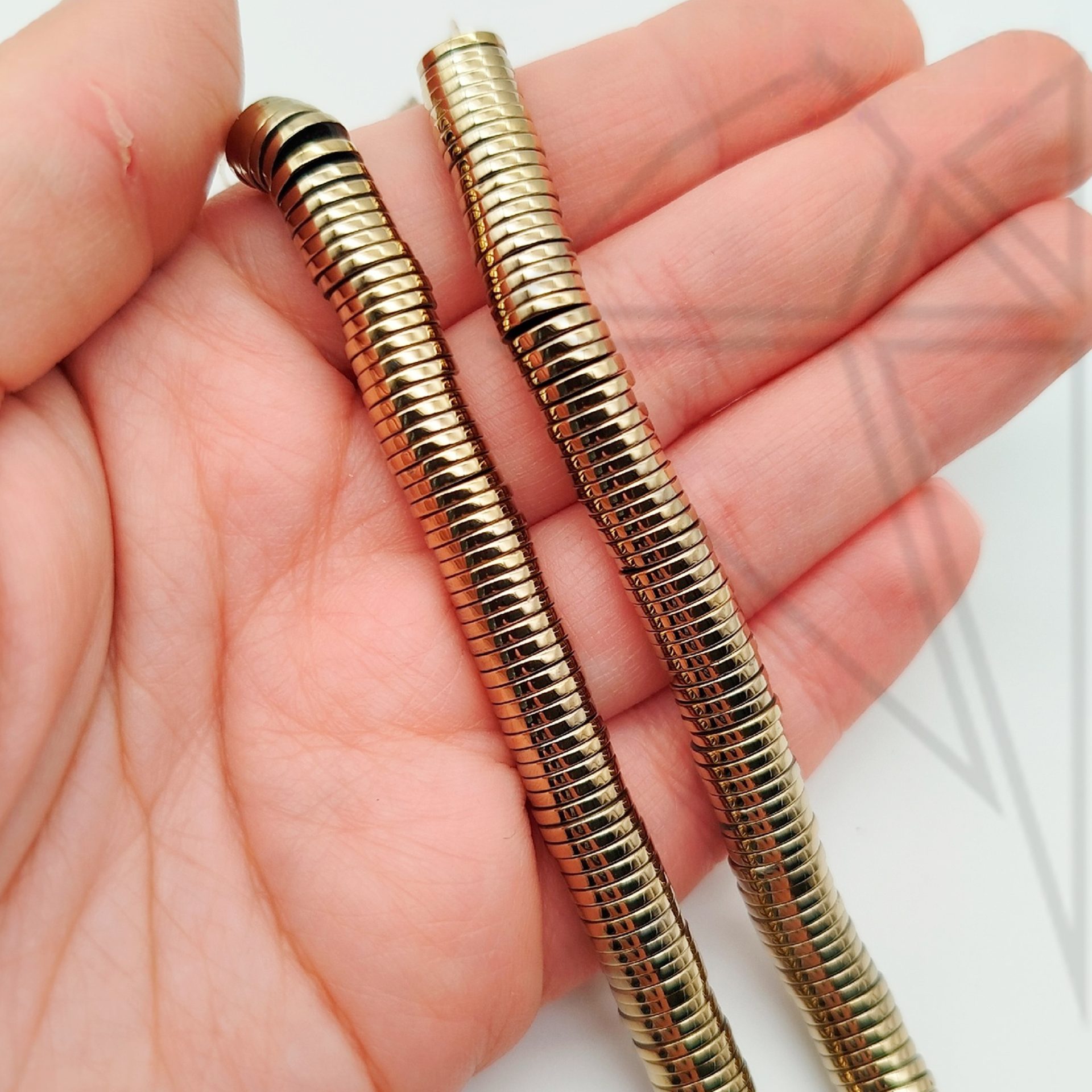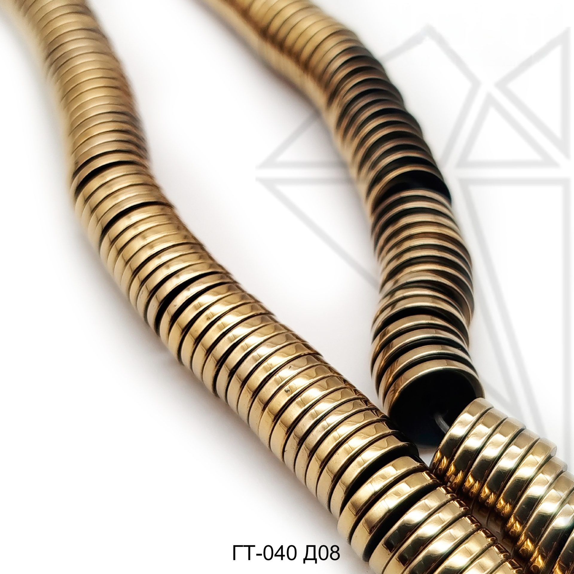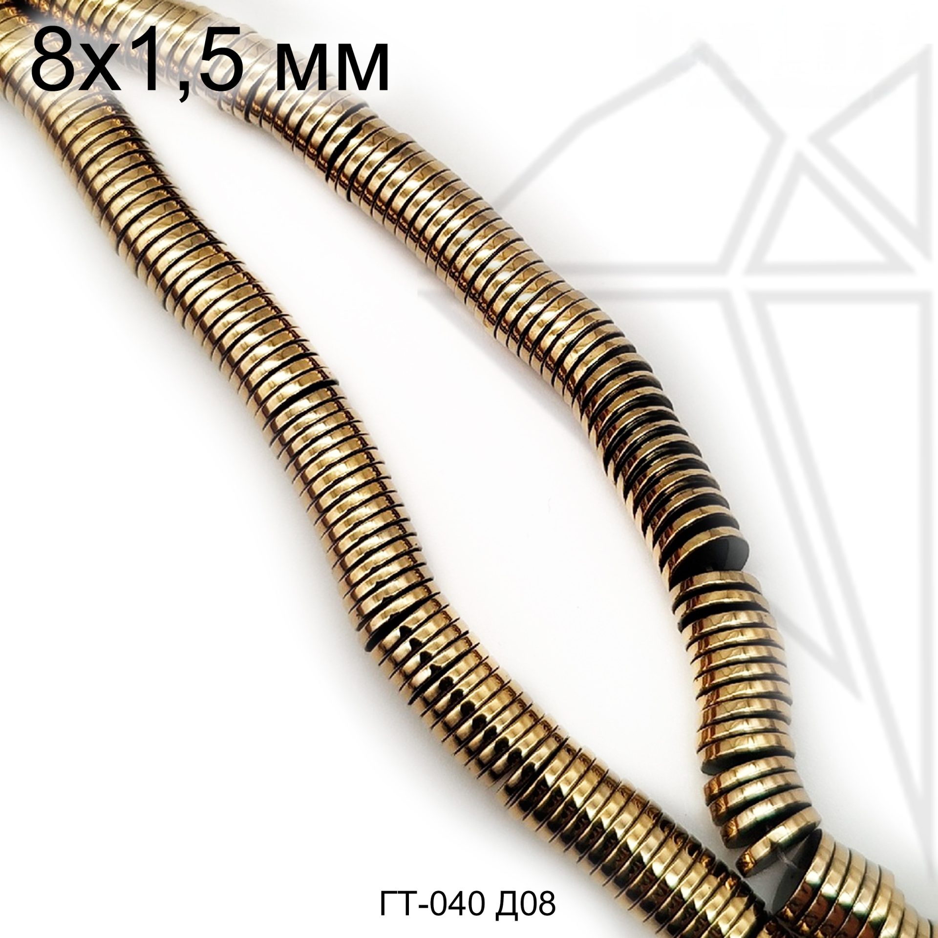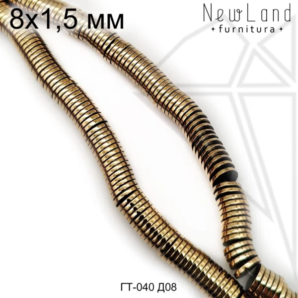 Гематит гладкий в форме диска диаметром 8 мм золотого цвета.