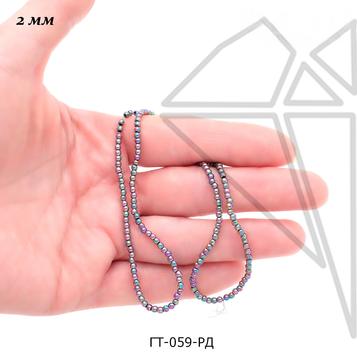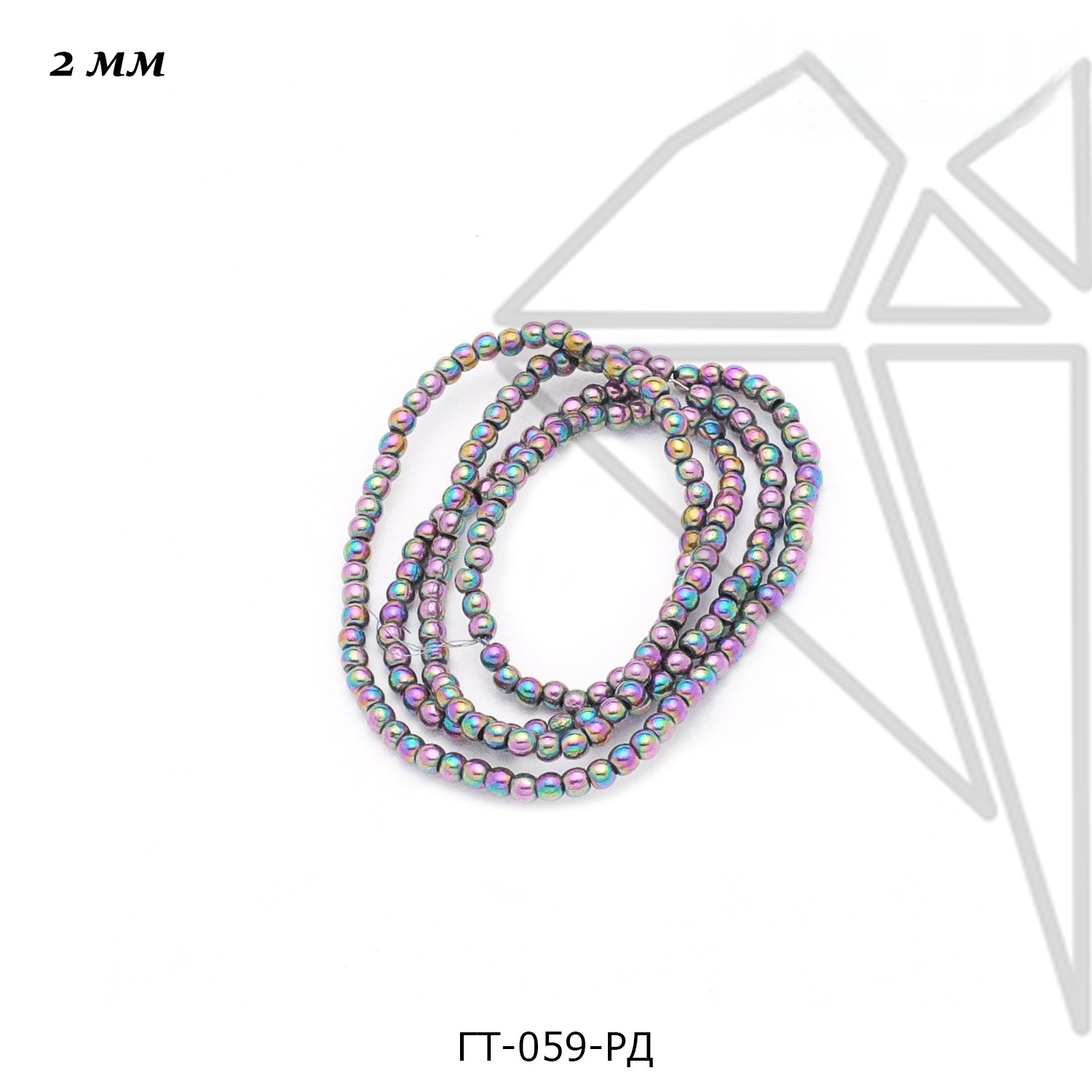 Гематит круглой гладкой формы 2 мм радужного цвета.
