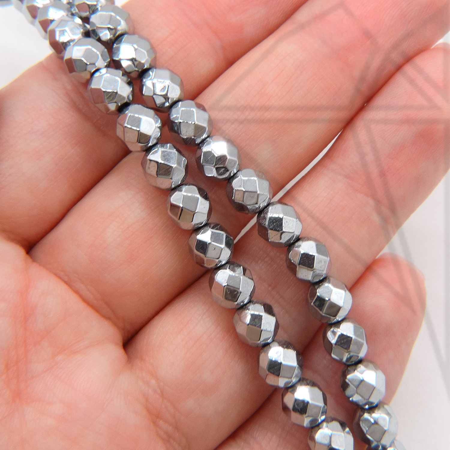 Гематит с огранкой с огранкой 6 мм серебристого цвета.