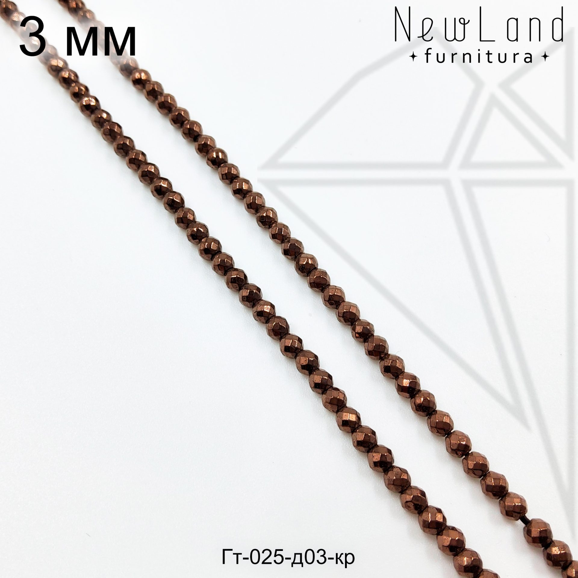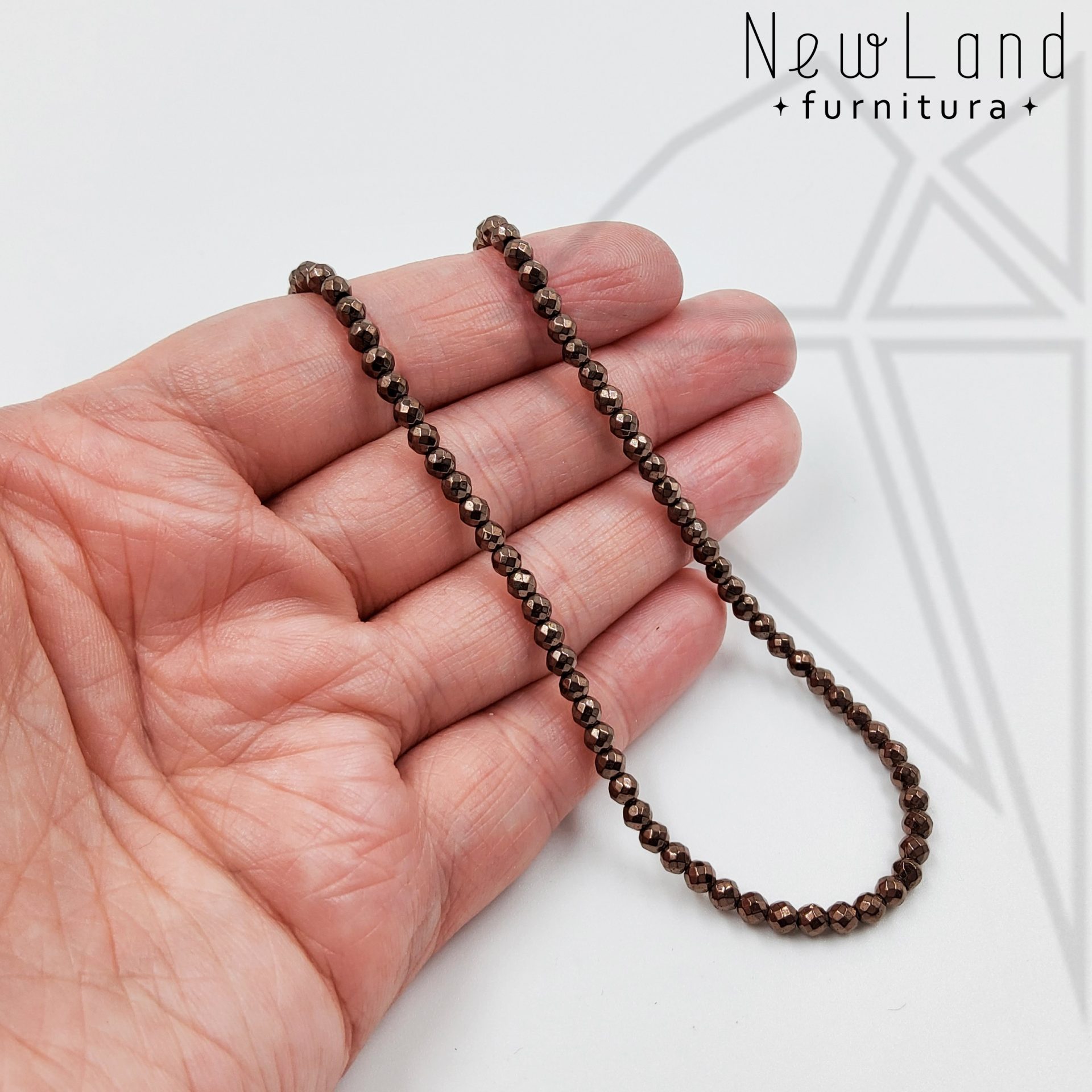 Гематит круглый с огранкой 3 мм коричневого цвета.