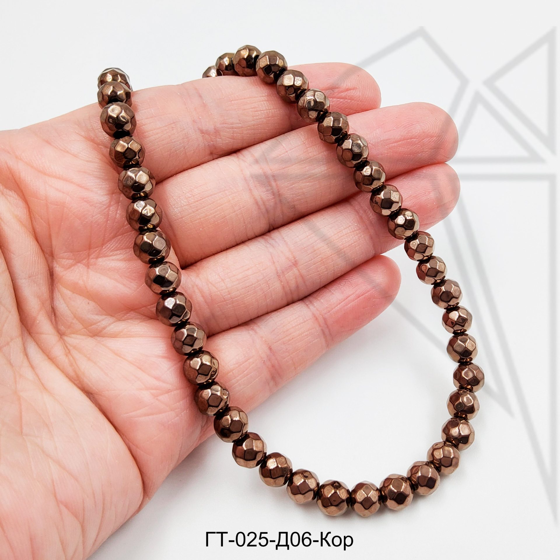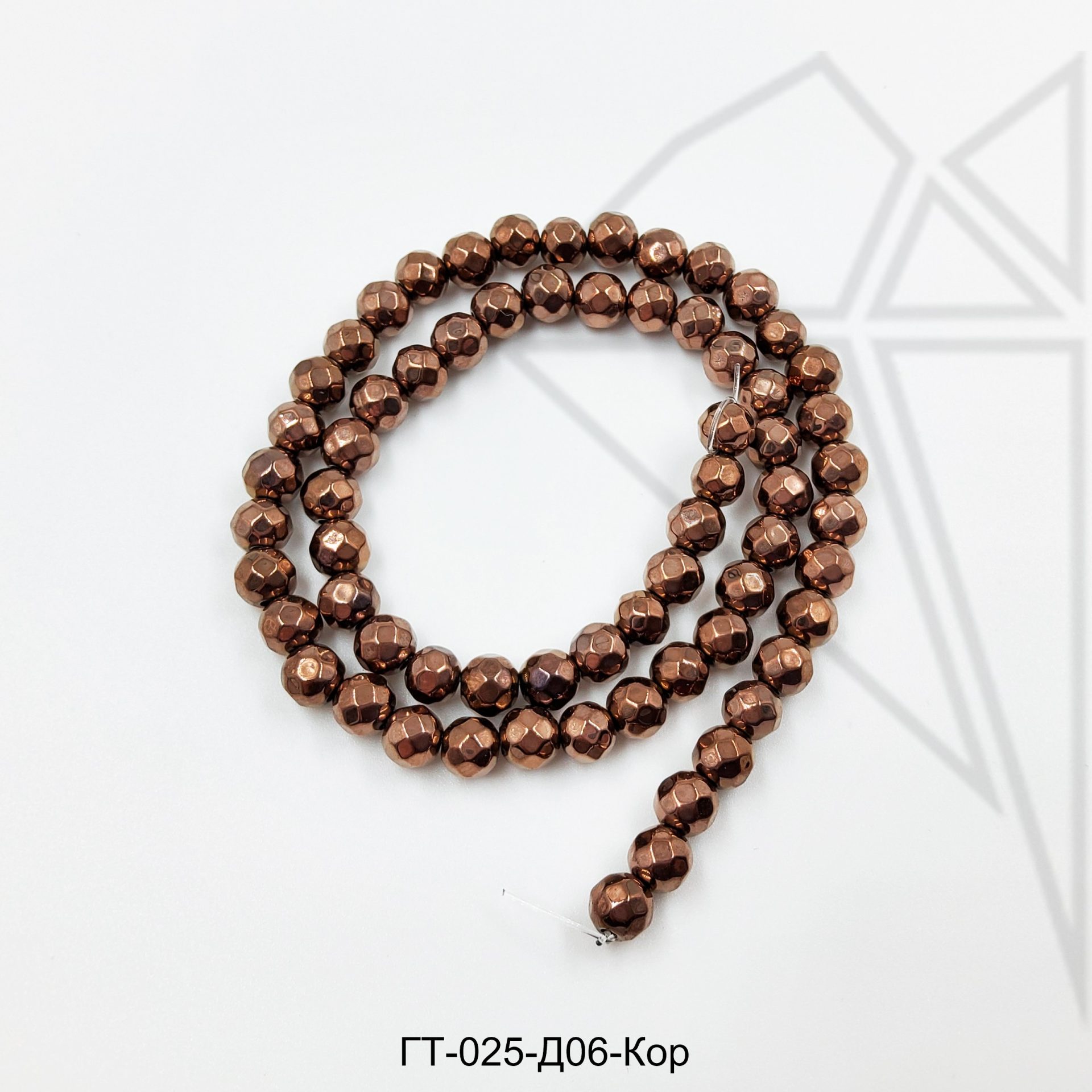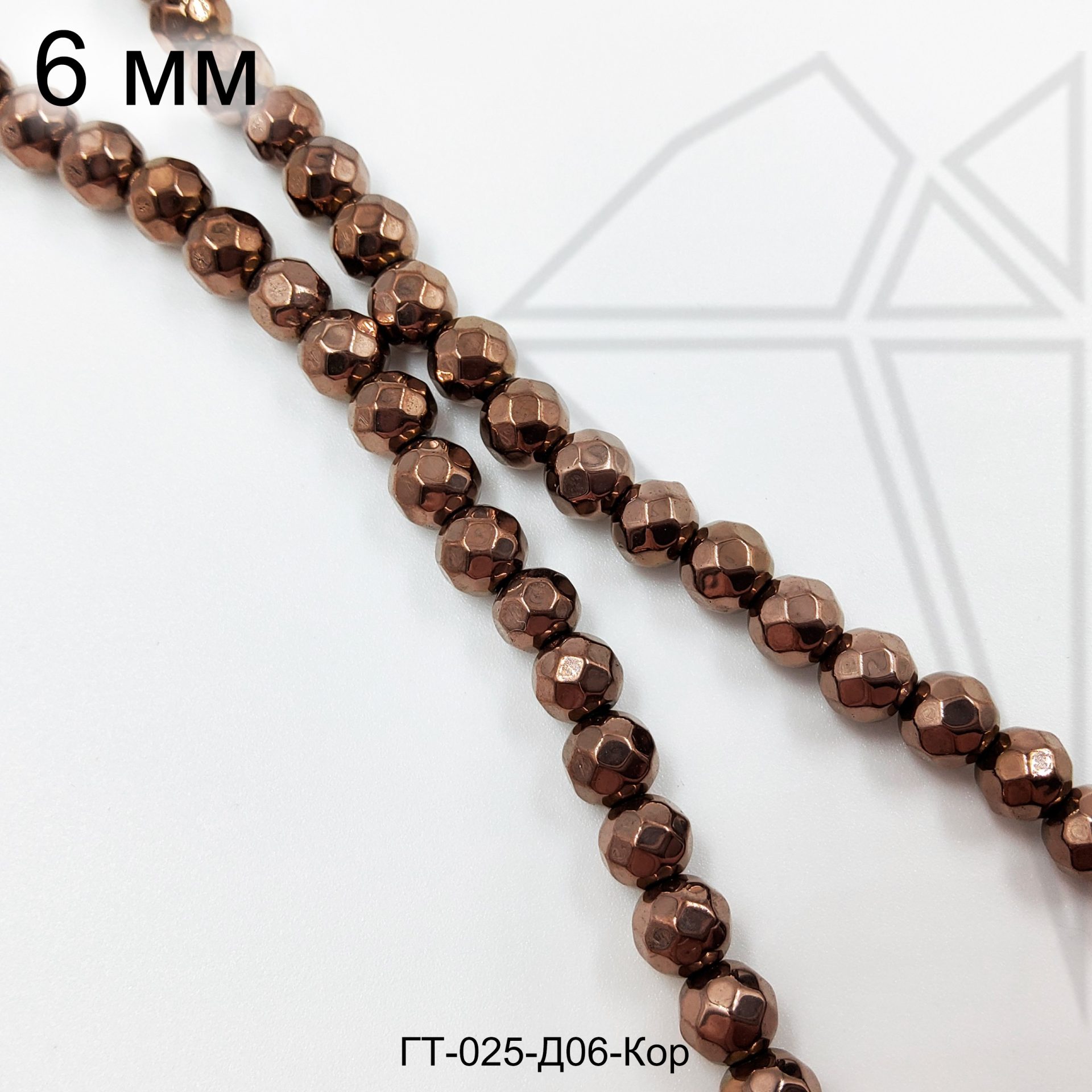 Гематит круглый с огранкой 6 мм коричневого цвета.