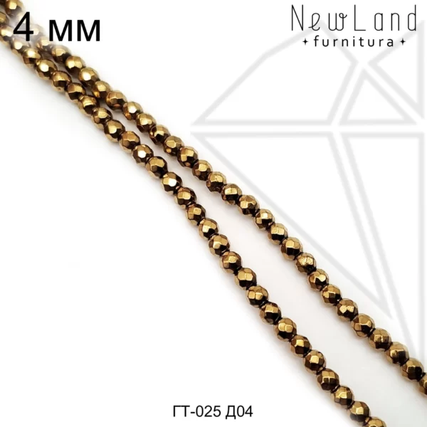 Гематит круглый с огранкой 4 мм золотого цвета.