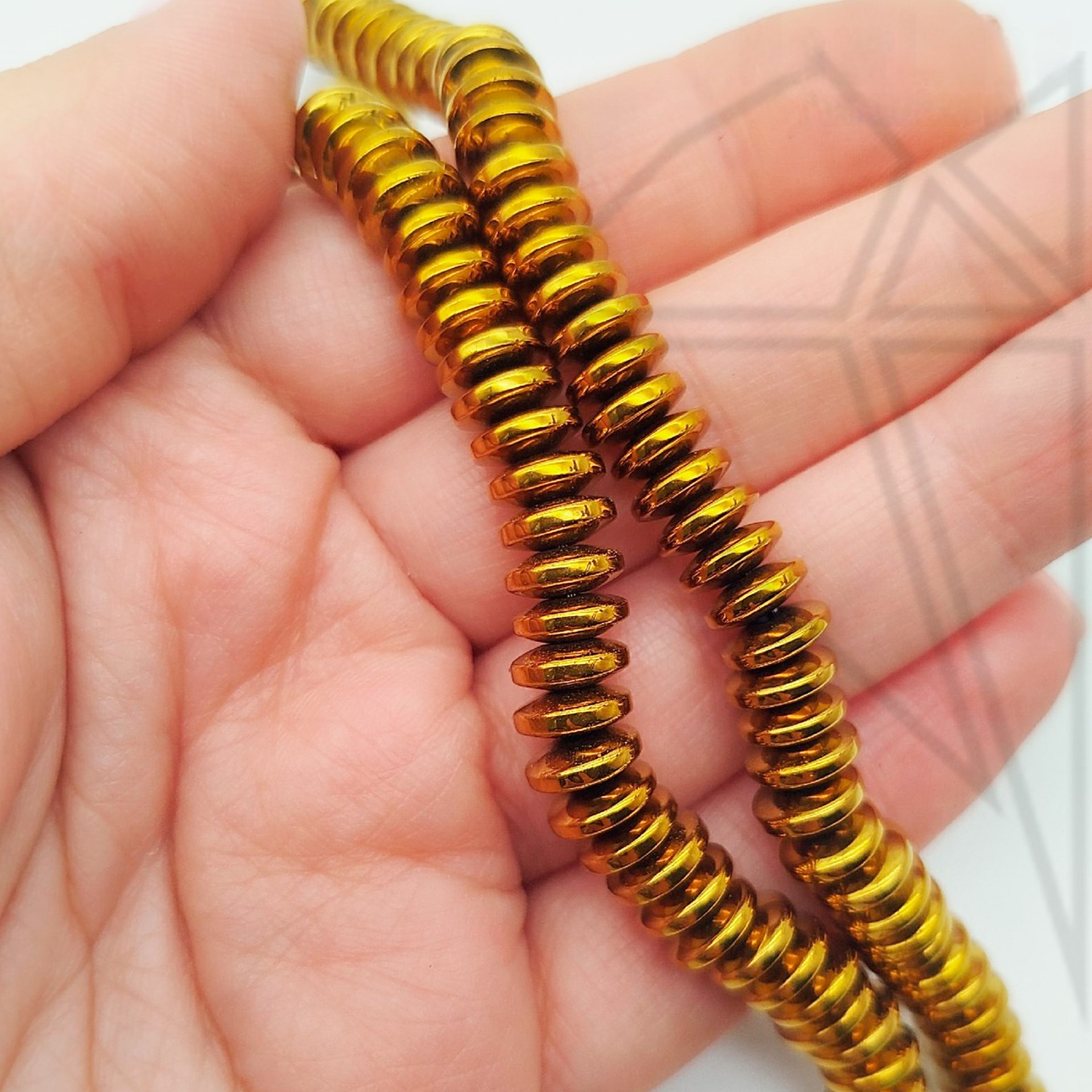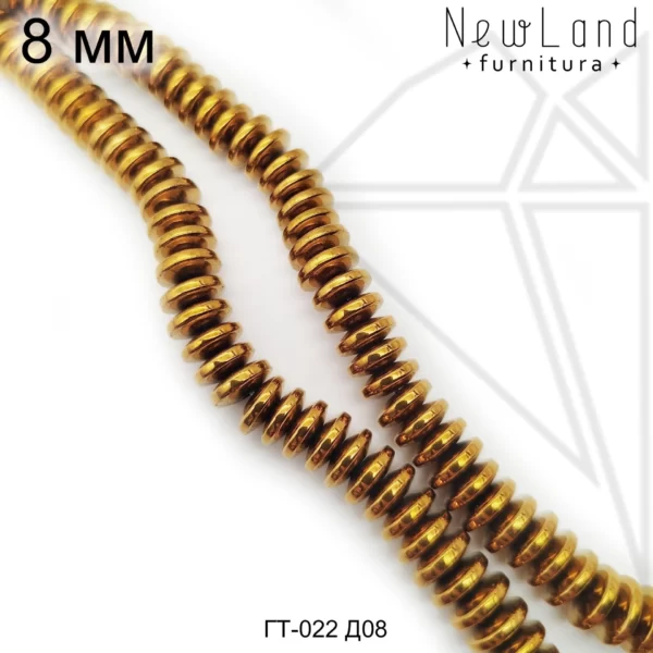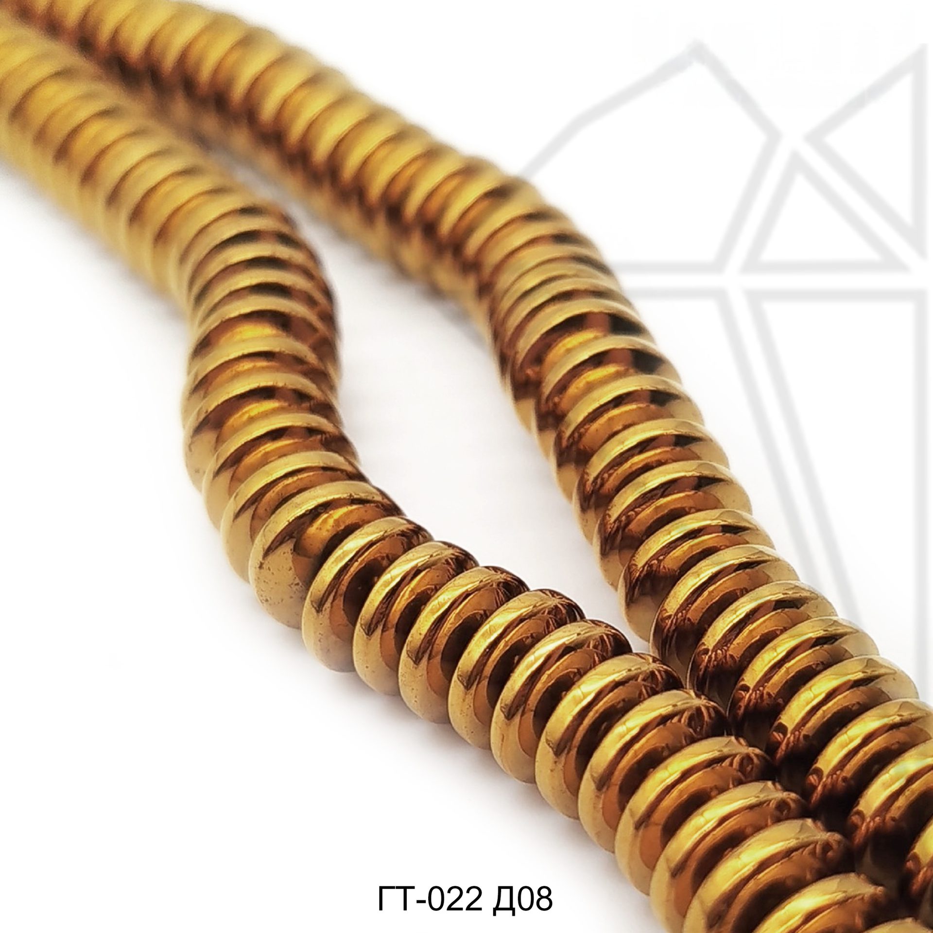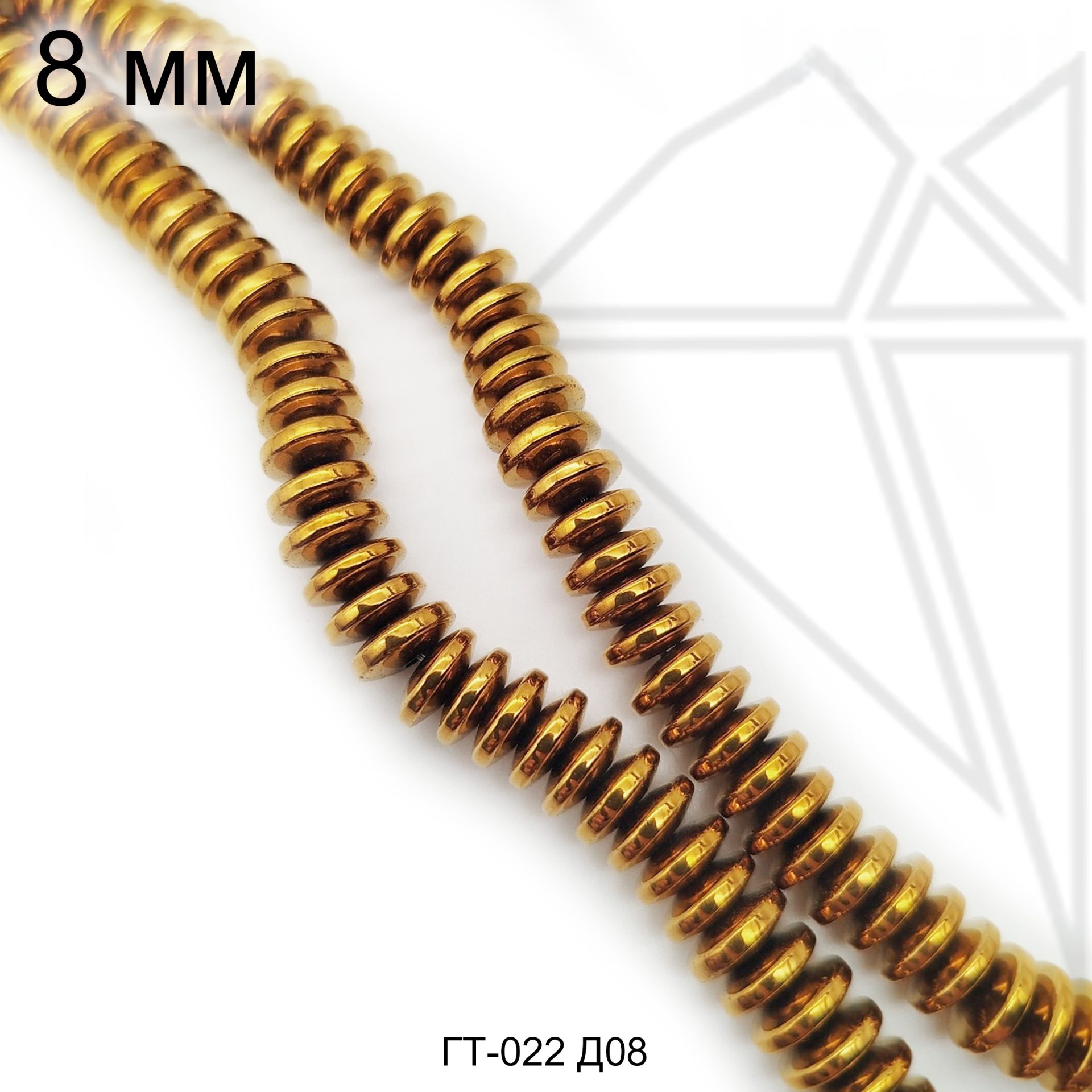 Гематит гладкий в форме таблетки диаметром 8 мм золотого цвета.